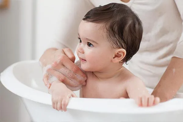 . برای حمام کردن نوزاد از آب و صابون یا شامپوی مناسب نوزاد استفاده کنید.