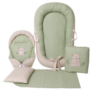 ست 5 تیکه تشک لبه دار و آغوشگیر گلدوزی خرس سبز