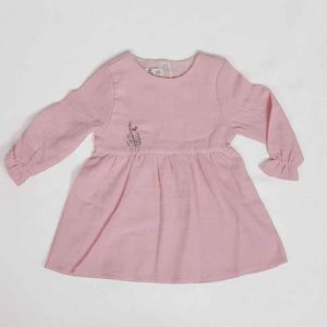 پیراهن موسلین گلدوزی دخترانه سایز 9 تا 12 ماه گلبهی