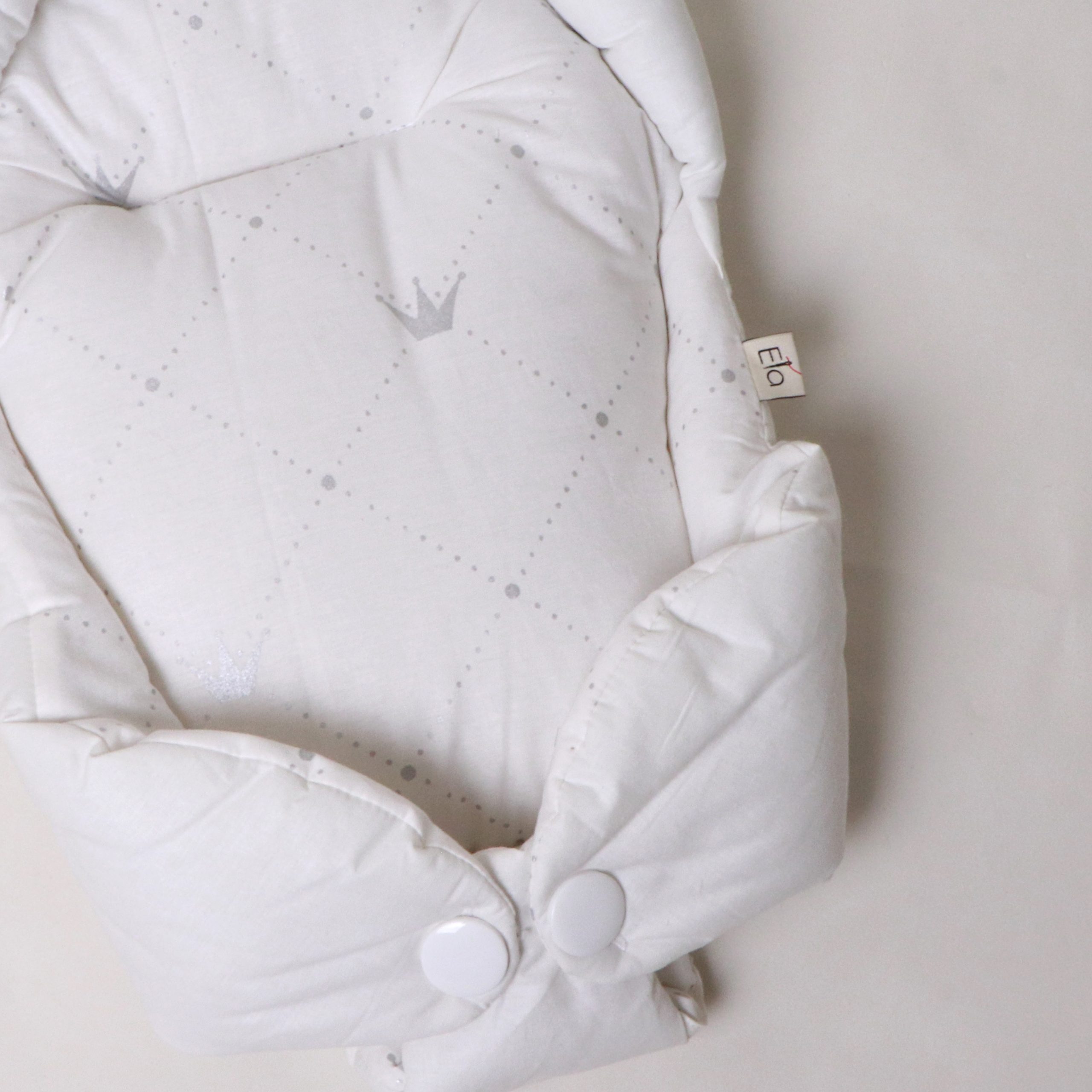هنگام آغوش گرفتن نوزاد، احتیاط شرط عقل است. بغل کردن نوزاد، در عینحال که بسیار شیرین است، سختیها و دستورالعملهای ویژهای دارد. آغوشگیر اِلا با طراحی ارگونومیک و پارچۀ کاملاً نخپنبه، سه اصل مهم را همزمان فراهم میکند: سلامت جسم، سلامت پوست، راحتی نوزاد. راحتی نوزاد به این دلیل است که فرم آغوشگیر، بدن نوزاد را در وضعیت طبیعی و جمعشده نگه میدارد و حس رحم مادر را تداعی میکند. بههیچوجه پاهای نوزاد را از هم باز نکنید. این حالت پاهای جمعشده کاملاً طبیعی است و برای این است که نوزاد هنوز خودش را در شکم مادرش تصور میکند. سلامت جسم به این دلیل است که سر و گردن نوزاد در یک حالت نرمال و طبیعی قرار میگیرد و فشاری رو ستون مهرهاش نمیآید. سلامت پوست به این دلیل است که پارچهها ۱۰۰٪ نخپنبۀ خالص هستند و هیچگونه الیاف مصنوعی یا مواد شیمیایی در آنها بهکار نرفته است.