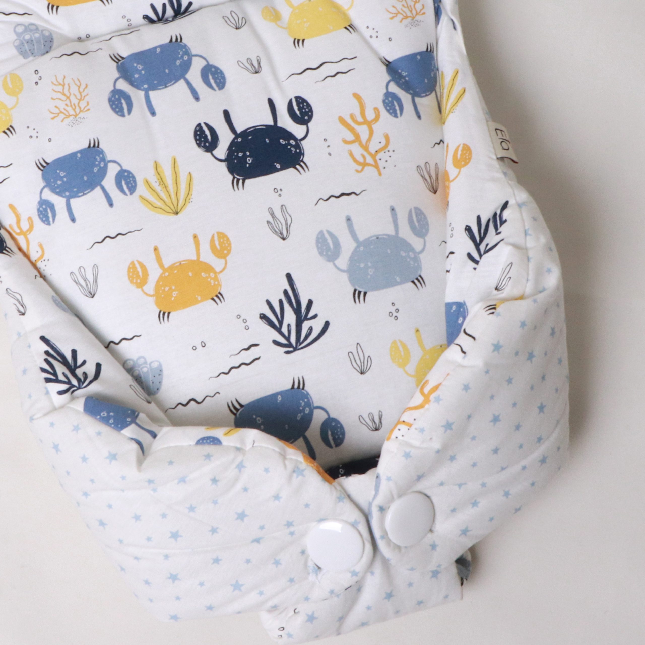 هنگام آغوش گرفتن نوزاد، احتیاط شرط عقل است. بغل کردن‌ نوزاد، در عین‌حال که بسیار شیرین است، سختی‌ها و دستورالعمل‌های ویژه‌ای دارد. آغوش‌گیر اِلا با طراحی ارگونومیک و پارچۀ کاملاً نخ‌پنبه، سه اصل مهم را هم‌زمان فراهم می‌کند: سلامت جسم، سلامت پوست، راحتی نوزاد. راحتی نوزاد به این دلیل است که فرم آغوش‌گیر، بدن نوزاد را در وضعیت طبیعی و جمع‌شده نگه می‌دارد و حس رحم مادر را تداعی می‌کند. به‌هیچ‌وجه پاهای نوزاد را از هم باز نکنید. این حالت پاهای جمع‌شده کاملاً طبیعی است و برای این است که نوزاد هنوز خودش را در شکم مادرش تصور می‌کند. سلامت جسم به این دلیل است که سر و‌ گردن نوزاد در یک‌ حالت نرمال و طبیعی قرار می‌گیرد و فشاری رو ستون مهره‌اش نمی‌آید. سلامت پوست به این دلیل است که پارچه‌ها ۱۰۰٪ نخ‌پنبۀ خالص هستند و هیچ‌گونه الیاف مصنوعی یا مواد شیمیایی در آن‌ها به‌کار نرفته است.