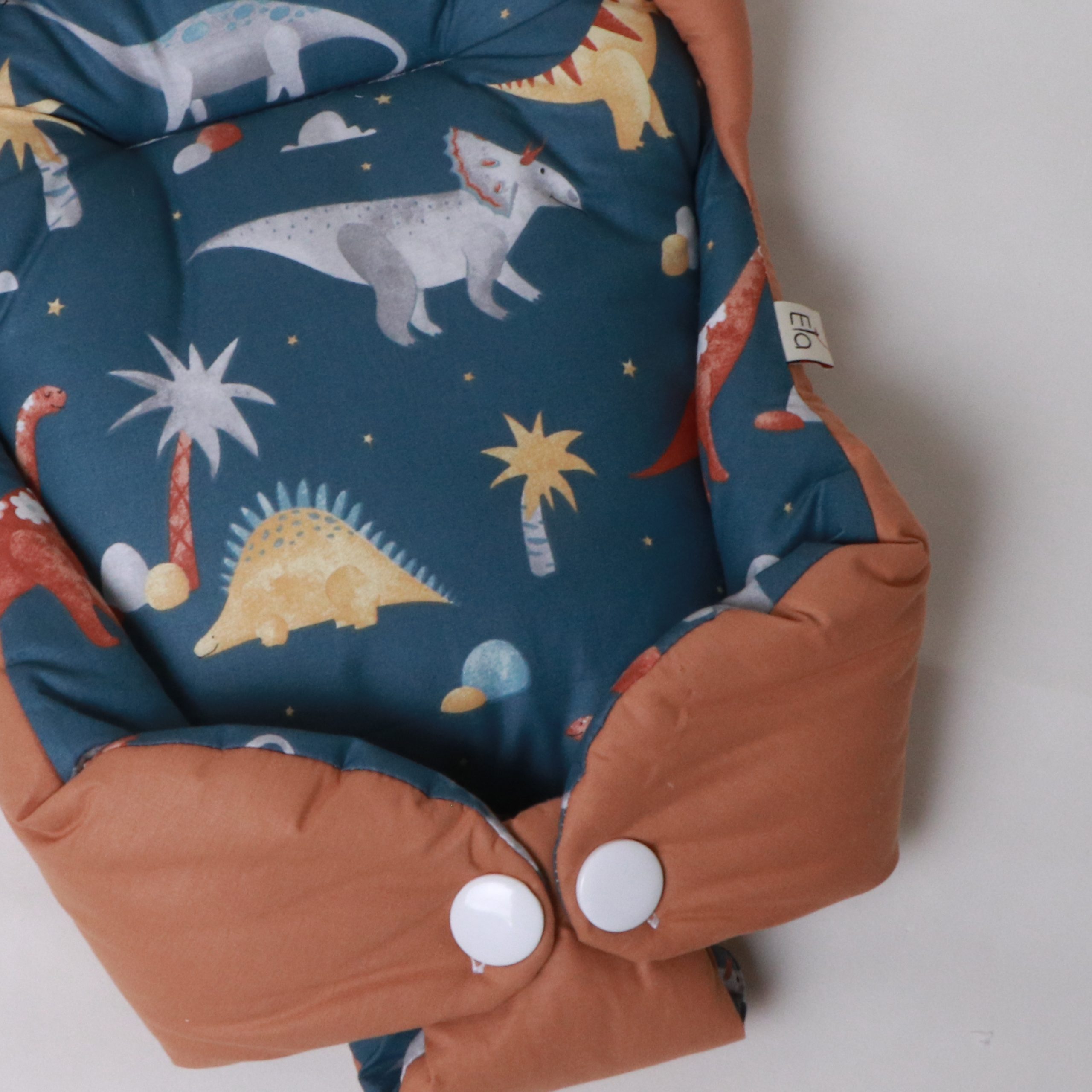 هنگام آغوش گرفتن نوزاد، احتیاط شرط عقل است. بغل کردن‌ نوزاد، در عین‌حال که بسیار شیرین است، سختی‌ها و دستورالعمل‌های ویژه‌ای دارد. آغوش‌گیر اِلا با طراحی ارگونومیک و پارچۀ کاملاً نخ‌پنبه، سه اصل مهم را هم‌زمان فراهم می‌کند: سلامت جسم، سلامت پوست، راحتی نوزاد. راحتی نوزاد به این دلیل است که فرم آغوش‌گیر، بدن نوزاد را در وضعیت طبیعی و جمع‌شده نگه می‌دارد و حس رحم مادر را تداعی می‌کند. به‌هیچ‌وجه پاهای نوزاد را از هم باز نکنید. این حالت پاهای جمع‌شده کاملاً طبیعی است و برای این است که نوزاد هنوز خودش را در شکم مادرش تصور می‌کند. سلامت جسم به این دلیل است که سر و‌ گردن نوزاد در یک‌ حالت نرمال و طبیعی قرار می‌گیرد و فشاری رو ستون مهره‌اش نمی‌آید. سلامت پوست به این دلیل است که پارچه‌ها ۱۰۰٪ نخ‌پنبۀ خالص هستند و هیچ‌گونه الیاف مصنوعی یا مواد شیمیایی در آن‌ها به‌کار نرفته است.