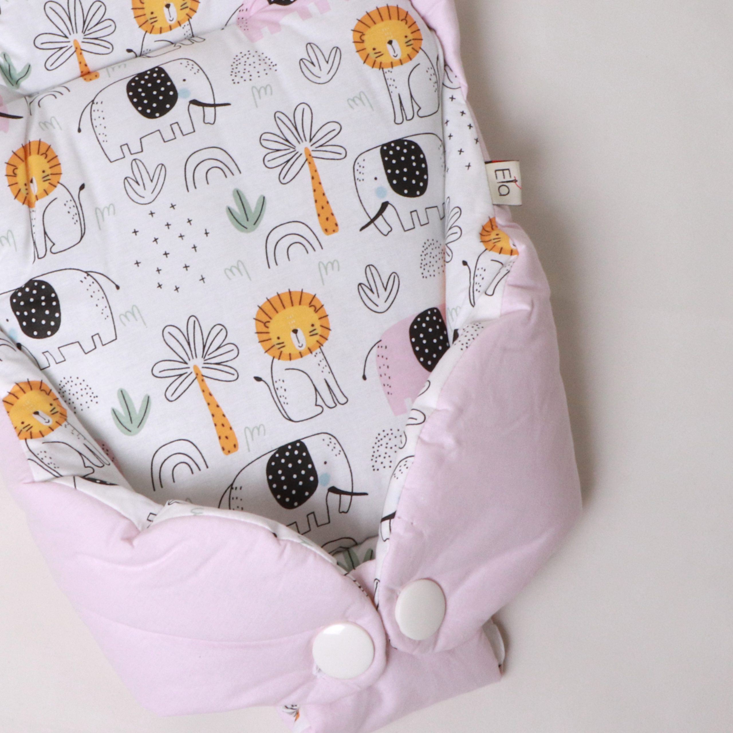هنگام آغوش گرفتن نوزاد، احتیاط شرط عقل است. بغل کردن‌ نوزاد، در عین‌حال که بسیار شیرین است، سختی‌ها و دستورالعمل‌های ویژه‌ای دارد. آغوش‌گیر اِلا با طراحی ارگونومیک و پارچۀ کاملاً نخ‌پنبه، سه اصل مهم را هم‌زمان فراهم می‌کند: سلامت جسم، سلامت پوست، راحتی نوزاد. راحتی نوزاد به این دلیل است که فرم آغوش‌گیر، بدن نوزاد را در وضعیت طبیعی و جمع‌شده نگه می‌دارد و حس رحم مادر را تداعی می‌کند. به‌هیچ‌وجه پاهای نوزاد را از هم باز نکنید. این حالت پاهای جمع‌شده کاملاً طبیعی است و برای این است که نوزاد هنوز خودش را در شکم مادرش تصور می‌کند. سلامت جسم به این دلیل است که سر و‌ گردن نوزاد در یک‌ حالت نرمال و طبیعی قرار می‌گیرد و فشاری رو ستون مهره‌اش نمی‌آید. سلامت پوست به این دلیل است که پارچه‌ها ۱۰۰٪ نخ‌پنبۀ خالص هستند و هیچ‌گونه الیاف مصنوعی یا مواد شیمیایی در آن‌ها به‌کار نرفته است.
