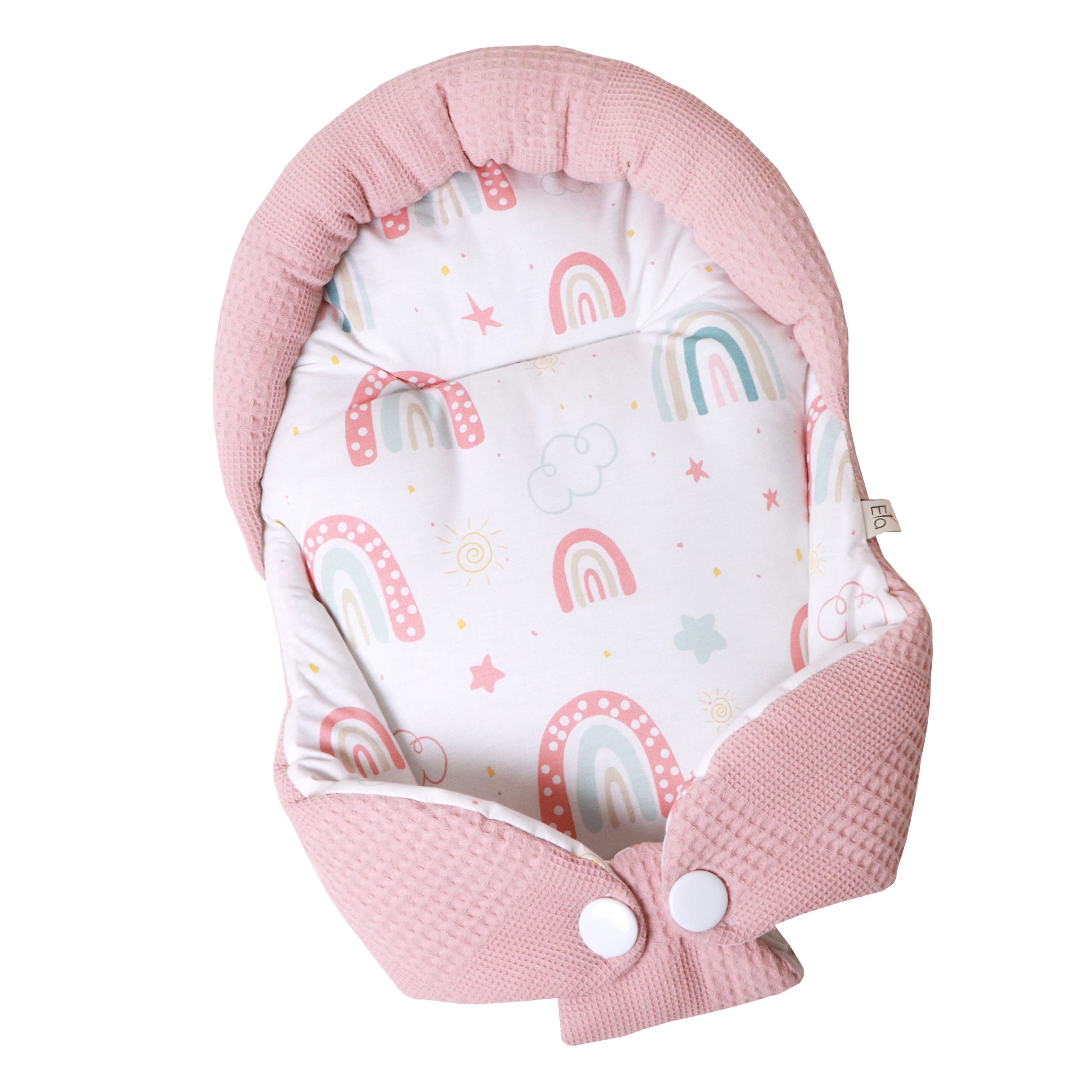 هنگام آغوش گرفتن نوزاد، احتیاط شرط عقل است. بغل کردن‌ نوزاد، در عین‌حال که بسیار شیرین است، سختی‌ها و دستورالعمل‌های ویژه‌ای دارد. آغوش‌گیر اِلا با طراحی ارگونومیک و پارچۀ کاملاً نخ‌پنبه، سه اصل مهم را هم‌زمان فراهم می‌کند: سلامت جسم، سلامت پوست، راحتی نوزاد. راحتی نوزاد به این دلیل است که فرم آغوش‌گیر، بدن نوزاد را در وضعیت طبیعی و جمع‌شده نگه می‌دارد و حس رحم مادر را تداعی می‌کند. به‌هیچ‌وجه پاهای نوزاد را از هم باز نکنید. این حالت پاهای جمع‌شده کاملاً طبیعی است و برای این است که نوزاد هنوز خودش را در شکم مادرش تصور می‌کند. سلامت جسم به این دلیل است که سر و‌ گردن نوزاد در یک‌ حالت نرمال و طبیعی قرار می‌گیرد و فشاری رو ستون مهره‌اش نمی‌آید. سلامت پوست به این دلیل است که پارچه‌ها ۱۰۰٪ نخ‌پنبۀ خالص هستند و هیچ‌گونه الیاف مصنوعی یا مواد شیمیایی در آن‌ها به‌کار نرفته است.