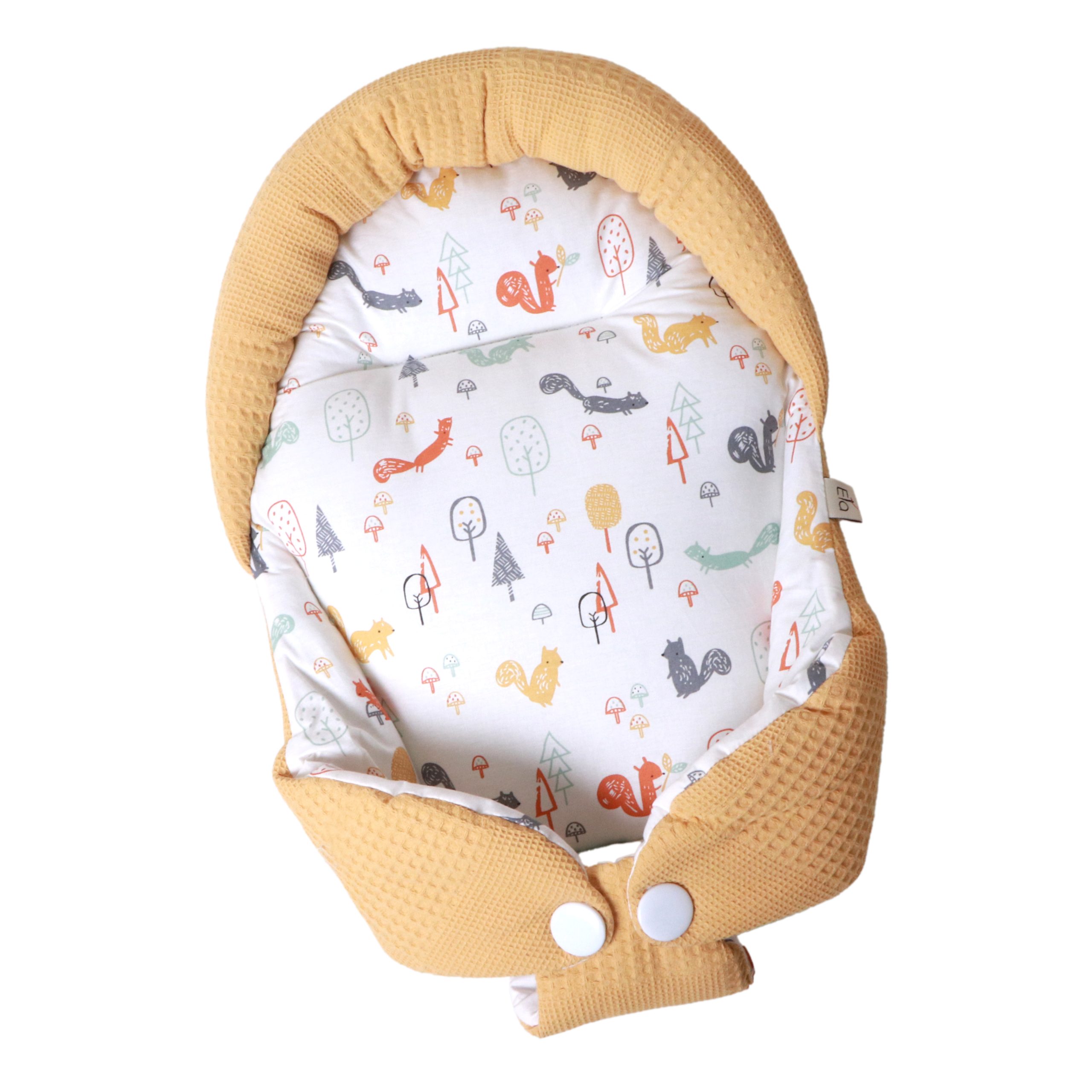 هنگام آغوش گرفتن نوزاد، احتیاط شرط عقل است. بغل کردن‌ نوزاد، در عین‌حال که بسیار شیرین است، سختی‌ها و دستورالعمل‌های ویژه‌ای دارد. آغوش‌گیر اِلا با طراحی ارگونومیک و پارچۀ کاملاً نخ‌پنبه، سه اصل مهم را هم‌زمان فراهم می‌کند: سلامت جسم، سلامت پوست، راحتی نوزاد. راحتی نوزاد به این دلیل است که فرم آغوش‌گیر، بدن نوزاد را در وضعیت طبیعی و جمع‌شده نگه می‌دارد و حس رحم مادر را تداعی می‌کند. به‌هیچ‌وجه پاهای نوزاد را از هم باز نکنید. این حالت پاهای جمع‌شده کاملاً طبیعی است و برای این است که نوزاد هنوز خودش را در شکم مادرش تصور می‌کند. سلامت جسم به این دلیل است که سر و‌ گردن نوزاد در یک‌ حالت نرمال و طبیعی قرار می‌گیرد و فشاری رو ستون مهره‌اش نمی‌آید. سلامت پوست به این دلیل است که پارچه‌ها ۱۰۰٪ نخ‌پنبۀ خالص هستند و هیچ‌گونه الیاف مصنوعی یا مواد شیمیایی در آن‌ها به‌کار نرفته است.