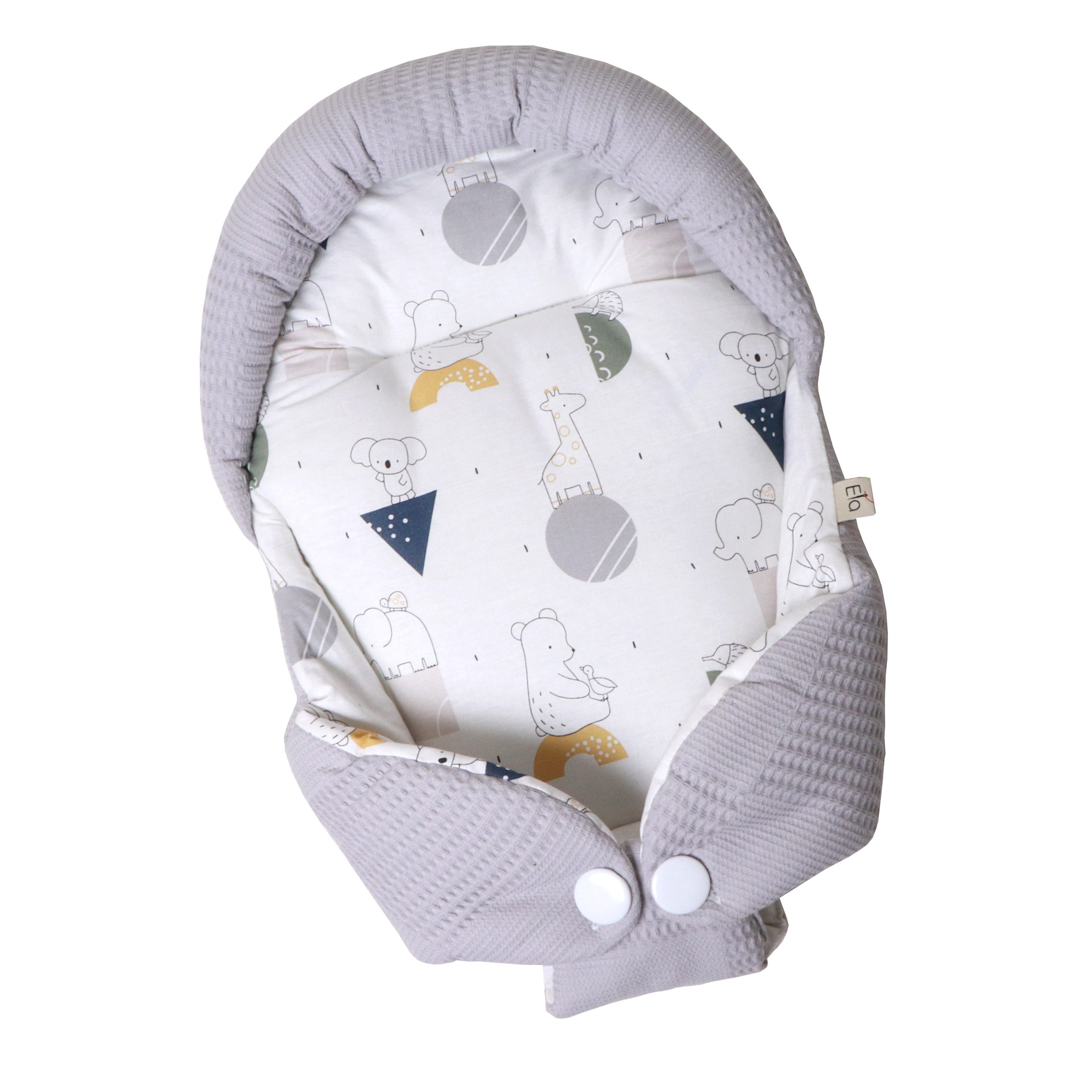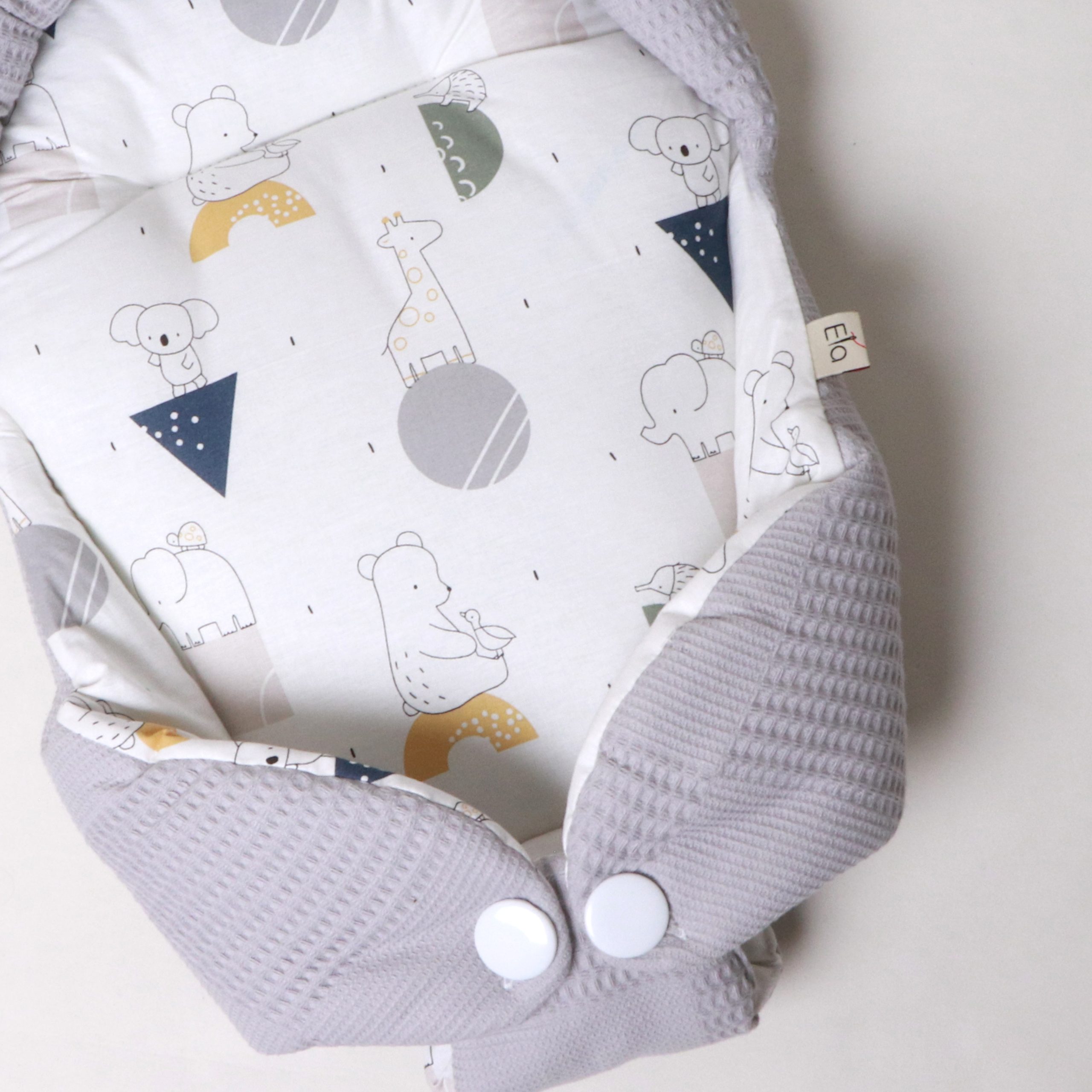 هنگام آغوش گرفتن نوزاد، احتیاط شرط عقل است. بغل کردن‌ نوزاد، در عین‌حال که بسیار شیرین است، سختی‌ها و دستورالعمل‌های ویژه‌ای دارد. آغوش‌گیر اِلا با طراحی ارگونومیک و پارچۀ کاملاً نخ‌پنبه، سه اصل مهم را هم‌زمان فراهم می‌کند: سلامت جسم، سلامت پوست، راحتی نوزاد. راحتی نوزاد به این دلیل است که فرم آغوش‌گیر، بدن نوزاد را در وضعیت طبیعی و جمع‌شده نگه می‌دارد و حس رحم مادر را تداعی می‌کند. به‌هیچ‌وجه پاهای نوزاد را از هم باز نکنید. این حالت پاهای جمع‌شده کاملاً طبیعی است و برای این است که نوزاد هنوز خودش را در شکم مادرش تصور می‌کند. سلامت جسم به این دلیل است که سر و‌ گردن نوزاد در یک‌ حالت نرمال و طبیعی قرار می‌گیرد و فشاری رو ستون مهره‌اش نمی‌آید. سلامت پوست به این دلیل است که پارچه‌ها ۱۰۰٪ نخ‌پنبۀ خالص هستند و هیچ‌گونه الیاف مصنوعی یا مواد شیمیایی در آن‌ها به‌کار نرفته است.