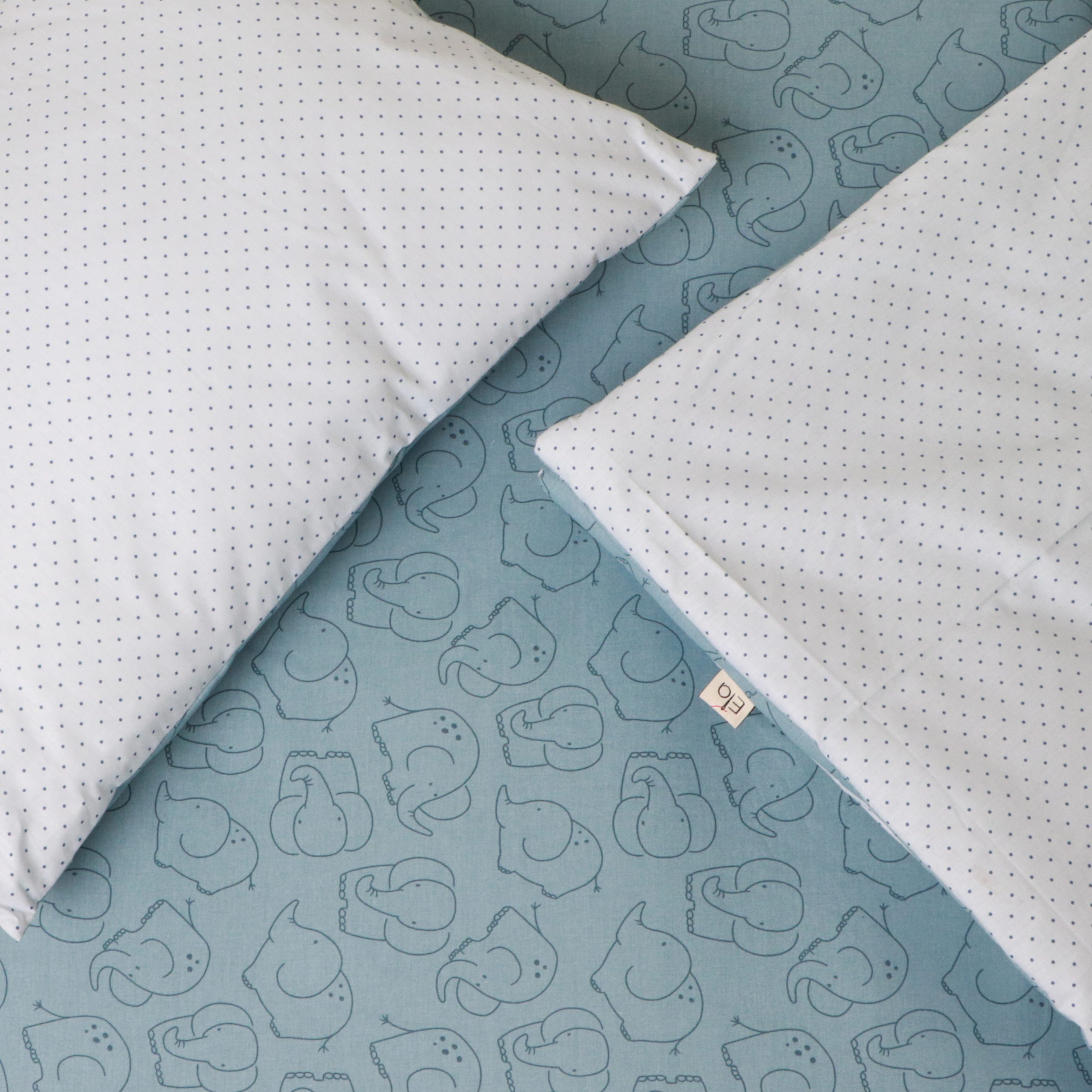 در این مدل، الیاف داخلی بهصورت کامل به پارچه دوخته شدهاند تا ضمن حفظ ساختار و نرمی مطلوب، در شستوشو جابجا نشوند. روبالشی هم با طراحی هوشمندانه از زیر قابل جداسازیست تا شستوشوی آن آسانتر شود. اندازهٔ این ست به گونهای انتخاب شده که مطابق چارت رشد کودک، از نوزادی تا حدود ۵ سالگی قابل استفاده باشد—یک همراه وفادار در سالهای طلایی رشد کودک.