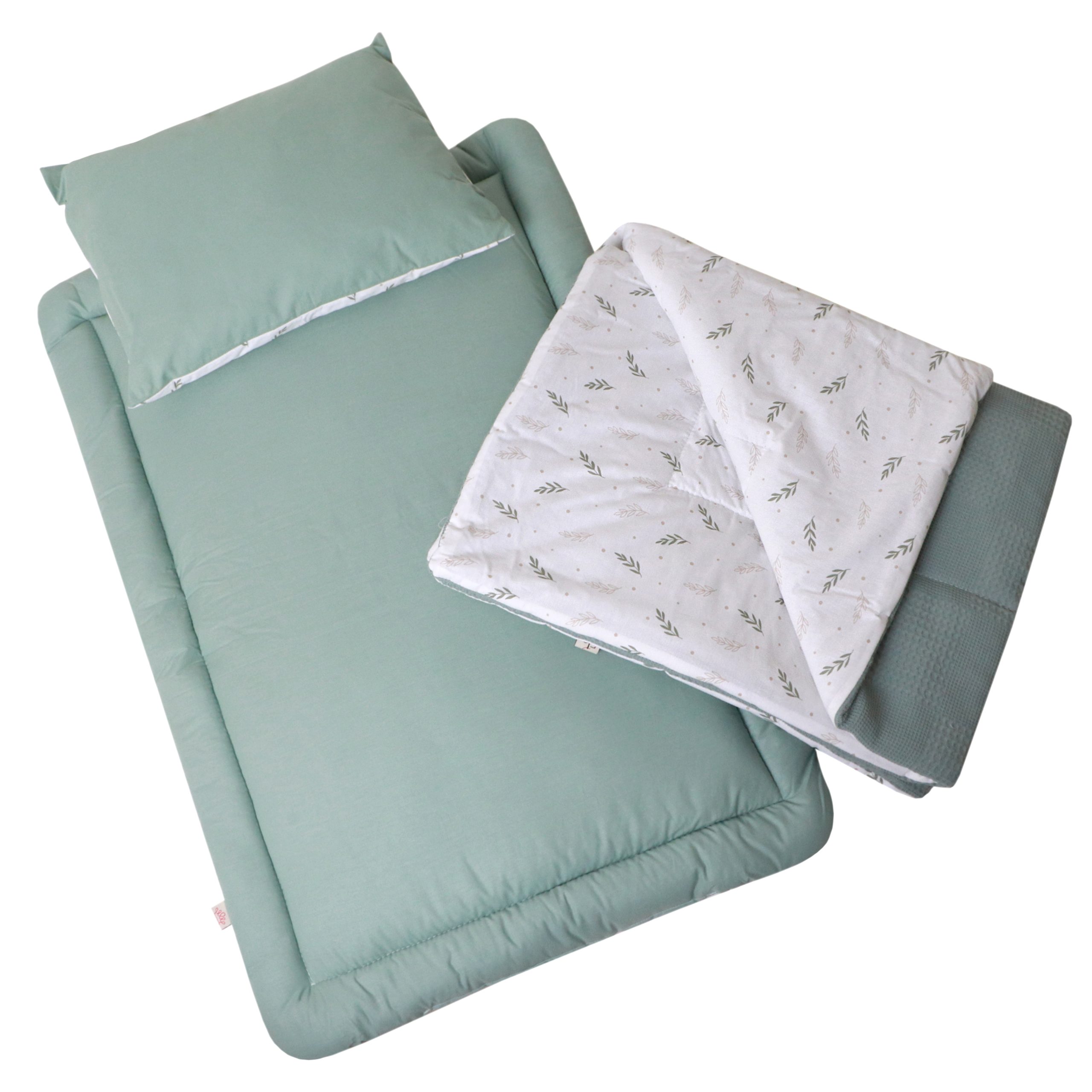 استفاده از پارچهی کتان صددرصد نخ ترک ارگانیک با بافت نرم و طبیعی، در کنار الیاف ضدحساسیت دوختهشده در تشک و لحاف، راحتی و ایمنی کودک را در اولویت قرار میدهد. این محصول علاوه بر طراحی زیبا و مینیمال، کاملاً قابل شستشو بوده و برای استفاده روزمره در خانه یا سفر انتخابی مطمئن است..