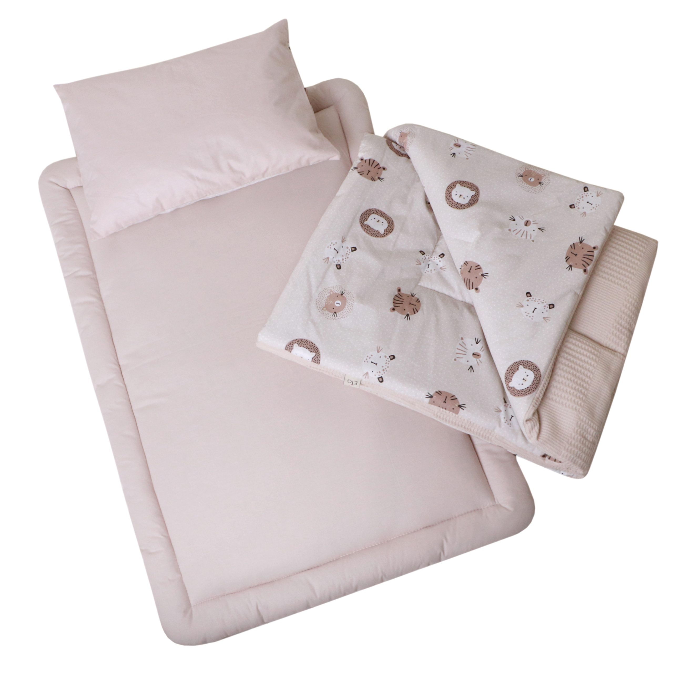 استفاده از پارچهی کتان صددرصد نخ ترک ارگانیک با بافت نرم و طبیعی، در کنار الیاف ضدحساسیت دوختهشده در تشک و لحاف، راحتی و ایمنی کودک را در اولویت قرار میدهد. این محصول علاوه بر طراحی زیبا و مینیمال، کاملاً قابل شستشو بوده و برای استفاده روزمره در خانه یا سفر انتخابی مطمئن است..