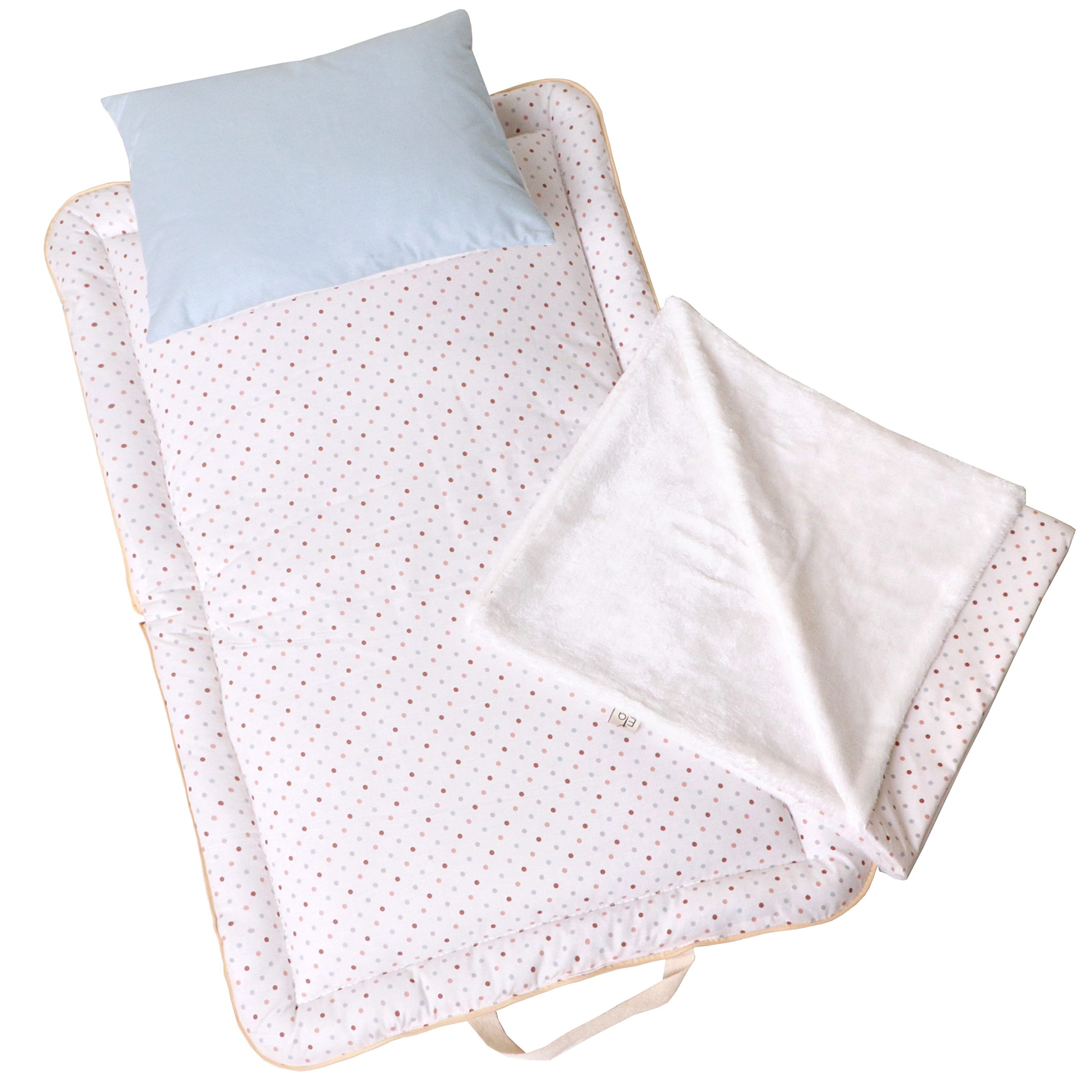 خواب نوزاد، به‌ویژه خارج از خانه، یکی از حساس‌ترین دغدغه‌های والدین است. تغییر فضا، نور، صدا و سطح خواب می‌تواند آرامش نوزاد را مختل کند. ست خواب مسافرتی اِلا با طراحی استاندارد و پارچۀ کاملاً نخ‌پنبه، سه اصل مهم را هم‌زمان فراهم می‌کند: آرامش نوزاد، راحتی بیرون رفتن با نوزاد،  سلامت پوست. آرامش نوزاد به این دلیل است که ست خواب مسافرتی اِلا، فضایی آشنا و امن شبیه به محیط خواب همیشگی نوزاد ایجاد می‌کند و از شوک محیطی در سفر یا مهمانی جلوگیری می‌کند. تشک با ضخامت استاندارد طراحی شده و بدن نوزاد را در حالت صاف و طبیعی نگه می‌دارد . راحتی بیرون رفتن با نوزاد به این دلیل است که این ست جمع‌و‌جور است و چون به حالت ساک دستی درمی‌آد، انتخاب اول مادران است. به‌ویژه مادرانی که شاغلند یا زیاد به مهمانی و سفر می‌روند. سلامت پوست به این دلیل است که تمامی پارچه‌ها ۱۰۰٪ نخ‌پنبه خالص هستند و هیچ‌گونه الیاف مصنوعی یا مواد شیمیایی در آن‌ها به‌کار نرفته است.
