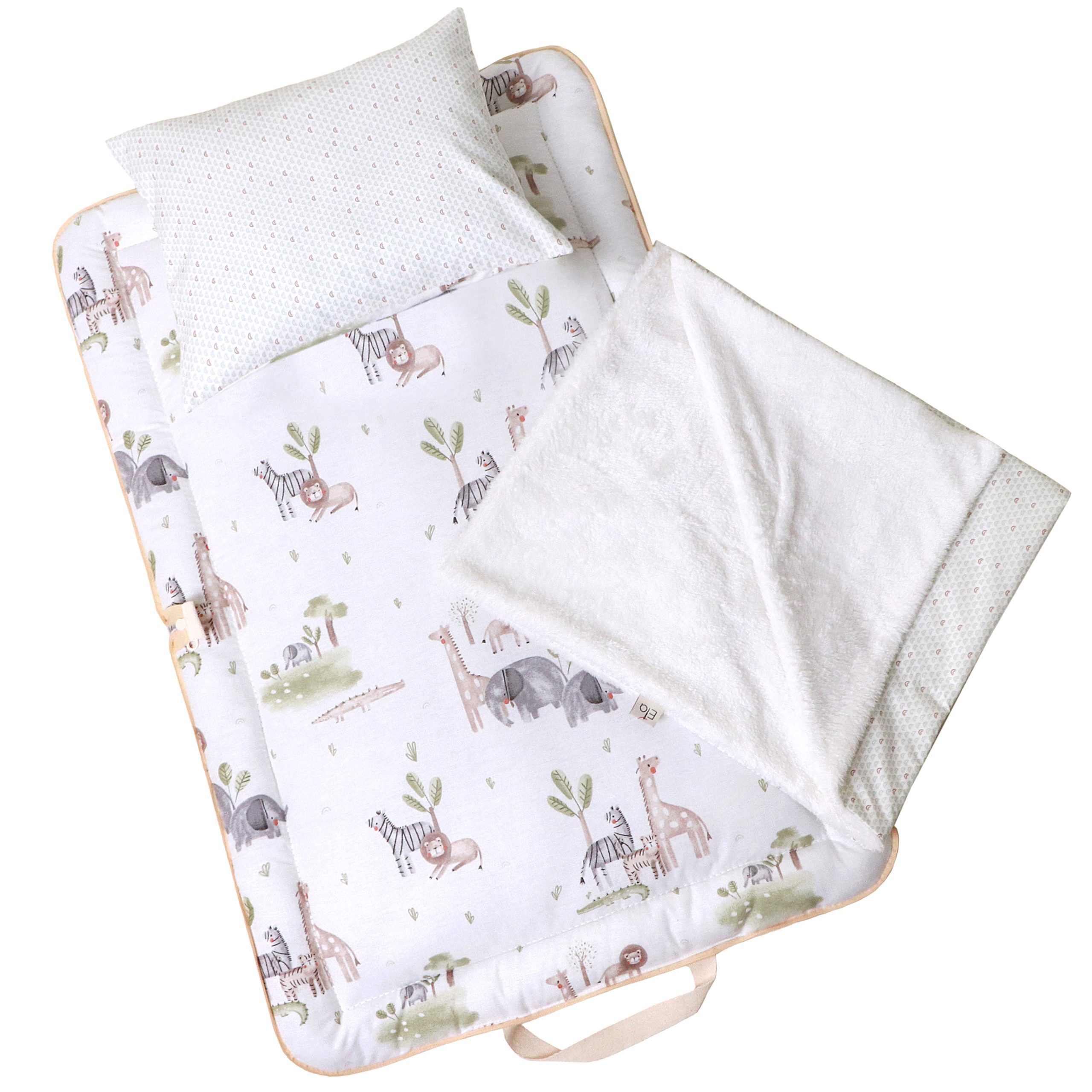 خواب نوزاد، به‌ویژه خارج از خانه، یکی از حساس‌ترین دغدغه‌های والدین است. تغییر فضا، نور، صدا و سطح خواب می‌تواند آرامش نوزاد را مختل کند. ست خواب مسافرتی اِلا با طراحی استاندارد و پارچۀ کاملاً نخ‌پنبه، سه اصل مهم را هم‌زمان فراهم می‌کند: آرامش نوزاد، راحتی بیرون رفتن با نوزاد،  سلامت پوست. آرامش نوزاد به این دلیل است که ست خواب مسافرتی اِلا، فضایی آشنا و امن شبیه به محیط خواب همیشگی نوزاد ایجاد می‌کند و از شوک محیطی در سفر یا مهمانی جلوگیری می‌کند. تشک با ضخامت استاندارد طراحی شده و بدن نوزاد را در حالت صاف و طبیعی نگه می‌دارد . راحتی بیرون رفتن با نوزاد به این دلیل است که این ست جمع‌و‌جور است و چون به حالت ساک دستی درمی‌آد، انتخاب اول مادران است. به‌ویژه مادرانی که شاغلند یا زیاد به مهمانی و سفر می‌روند. سلامت پوست به این دلیل است که تمامی پارچه‌ها ۱۰۰٪ نخ‌پنبه خالص هستند و هیچ‌گونه الیاف مصنوعی یا مواد شیمیایی در آن‌ها به‌کار نرفته است.