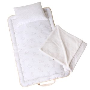 خواب نوزاد، به‌ویژه خارج از خانه، یکی از حساس‌ترین دغدغه‌های والدین است. تغییر فضا، نور، صدا و سطح خواب می‌تواند آرامش نوزاد را مختل کند. ست خواب مسافرتی اِلا با طراحی استاندارد و پارچۀ کاملاً نخ‌پنبه، سه اصل مهم را هم‌زمان فراهم می‌کند: آرامش نوزاد، راحتی بیرون رفتن با نوزاد،  سلامت پوست. آرامش نوزاد به این دلیل است که ست خواب مسافرتی اِلا، فضایی آشنا و امن شبیه به محیط خواب همیشگی نوزاد ایجاد می‌کند و از شوک محیطی در سفر یا مهمانی جلوگیری می‌کند. تشک با ضخامت استاندارد طراحی شده و بدن نوزاد را در حالت صاف و طبیعی نگه می‌دارد . راحتی بیرون رفتن با نوزاد به این دلیل است که این ست جمع‌و‌جور است و چون به حالت ساک دستی درمی‌آد، انتخاب اول مادران است. به‌ویژه مادرانی که شاغلند یا زیاد به مهمانی و سفر می‌روند. سلامت پوست به این دلیل است که تمامی پارچه‌ها ۱۰۰٪ نخ‌پنبه خالص هستند و هیچ‌گونه الیاف مصنوعی یا مواد شیمیایی در آن‌ها به‌کار نرفته است.