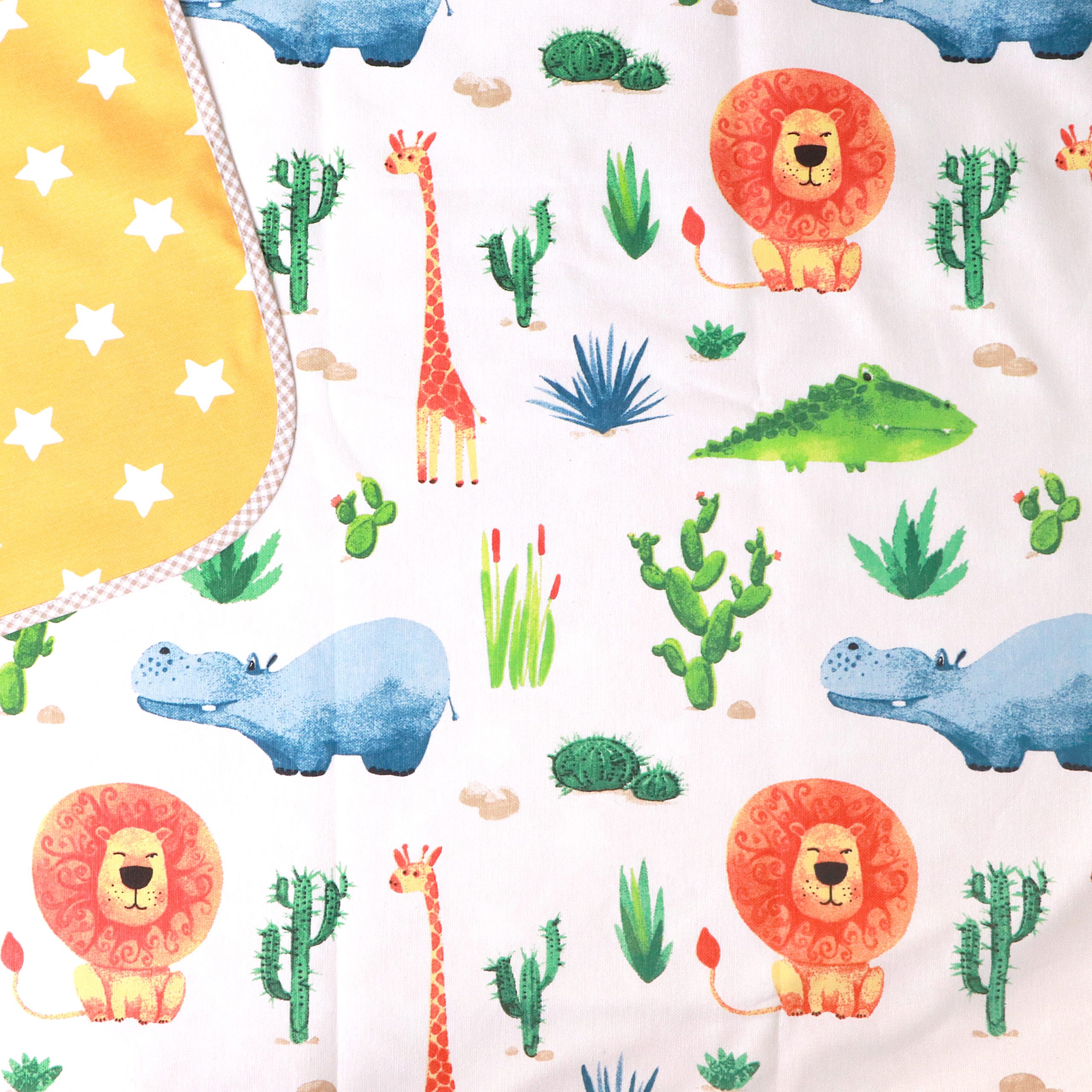 یکی از دغدغه‌های اصلی والدین، اختصاص دادن محیطی مجزا، تمیز و درعین‌حال کودکانه و جذاب برای بازی و غذا خوردن کودک است. کودک کنجکاو است، دست و صورتش به‌سرعت کثیف می‌شود و حفظ نظافت خانه گاهی چالش‌برانگیز است. زیرانداز غذا و بازی کودک با طراحی هوشمندانه و پارچۀ ارگانیک کتان داک ترک، پاسخی است به پرسش‌ها و دغدغه‌های نومادران. این زیرانداز با ایجاد یک محدودۀ مشخص، هم فضای امن بازی را فراهم می‌کند و هم از کثیف شدن فرش و خانه جلوگیری می‌کند. جنس کتان داک باعث می‌شود این زیرانداز ثابت بماند و کودک بتواند با خیال راحت بازی کند یا غذا بخورد.