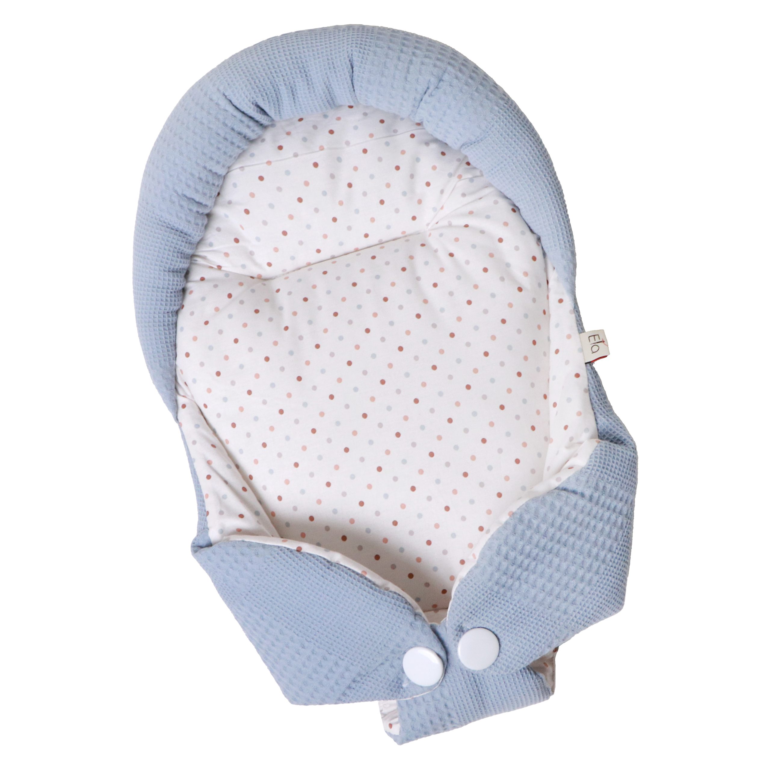 اولین‌روزها، مهم‌ترین روزها هستند. روزهای ابتدایی به دنیا آمدن نوزاد، شروع مسئولیت‌های پدر و مادر و‌ آشنایی با دنیای کودکانۀ اوست. ست پنج تیکۀ تشک لبه‌دار، اولویت اول و اصلی این شروع است. خوابِ آرام، ایمنی جسمی و سلامت پوستی، سه موضوع مهم و‌ حیاتی است که اِلا در طراحی ست پنج تیکۀ شک لبه‌دار و آغوش‌گیر به‌کار گرفته است. خوابِ آرام، به این دلیل است که گاردهای تشک، حالت رحم مادر را تداعی می‌کند و به نوزاد این احساس را می‌دهد که دنیای بیرون از شکم مادر هم همان‌قدر امن و راحت است. ایمنی جسمی، به این دلیل است که گاردهای اطراف تشک، مانع افتادن و غلت خوردن نوزاد می‌شود. سلامتی پوستی، به این دلیل است که جنس پارچه‌ها نخ‌پنبه ۱۰۰٪ است و هیچ مادۀ شیمیایی یا پلی‌استر در آن به‌کار نرفته است. مشخصات فنی و ابعاد: تشک لبه‌دار(ابعاد داخلی:40*71، ابعاد بیرونی:53*87) آغوش‌گیر(ابعاد داخلی:31*41، ابعاد بیرونی: 36*56) بالشت: 26*35 روانداز پیکه:74*84 محافظ تشک:40*71 چرا ست پنج‌تیکه اِلا؟ قابل استفاده از بدو تولد تا یکسالگی پارچۀ لطیف و ارگانیک ترک طراحی ایمن برای خواب نوزاد دوخت تمیز و بادوام دستورالعمل شست‌وشو • شست‌وشو با آب ولرم • شویندۀ مخصوص نوزاد • بدون استفاده از سفیدکننده • خشک‌کردن با دمای ملایم یا هوای آزاد سوالات پرتکرار ▪️ رنگ اصلی کالا با عکس تطابق دارد؟ ممکن است به‌دلیل ادیت یا نور عکاسی، یک یا دو درجه اختلاف رنگ داشته باشد. ▪️ از بدو تولد قابل استفاده است؟ بله، تمام آیتم‌ها مناسب نوزاد تازه‌متولد شده طراحی شده‌اند. ▪️ برای پوست حساس مناسب است؟ بله، پارچه‌ها لطیف و ضد حساسیت هستن. ▪️ بعد از شست‌وشو تغییر شکل می‌دهد؟ خیر، با رعایت دستور شست‌وشو کیفیت و فرم حفظ می‌شه. ▪️ مناسب هدیه است؟ کاملاً. هم کاربردی است، هم شیک و ماندگار. ▪️تشک برای رفلاکس مناسب است؟ بله. با کمی شیب دادن به تشک، به یک تشک آنتی‌رفلاکس تبدیل می‌شود. موضوعات مرتبط با تشک لبه‌دار و آغوش‌گیر ۱-چرا باید از آغوش‌گیر استفاده کرد؟ ۲-تشک لبه‌دار جنبۀ مراقبتی دارد یا درمانی؟ ۳-چرا توصیه می‌شود برای نوزادان از جنس نخ خالص استفاده شود؟ ۴- چرا تشک لبه‌دار به خواب آرام نوزاد کمک می‌کند؟