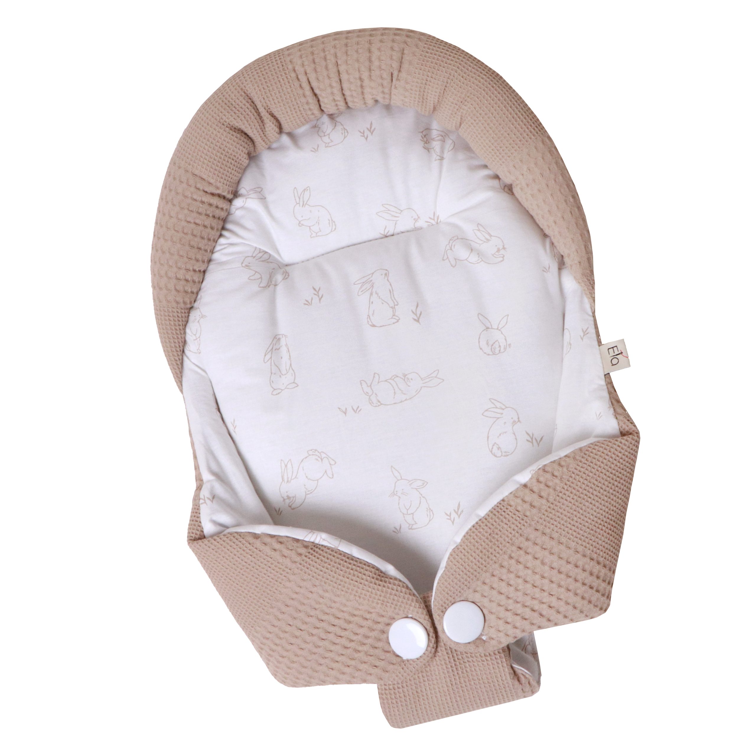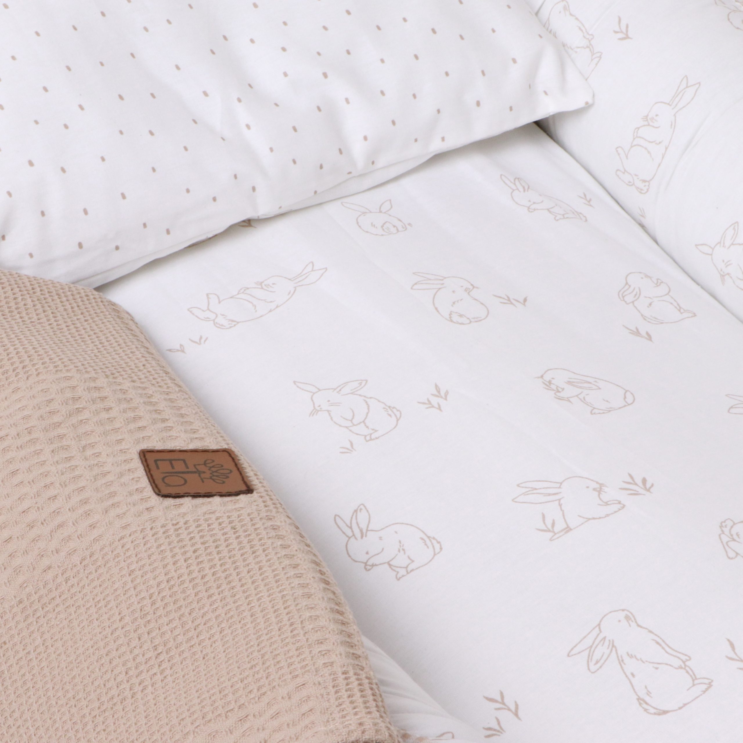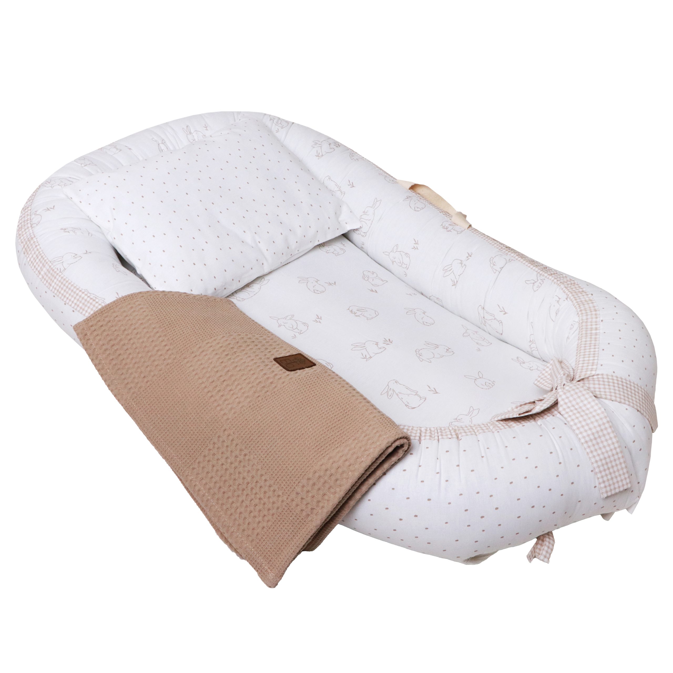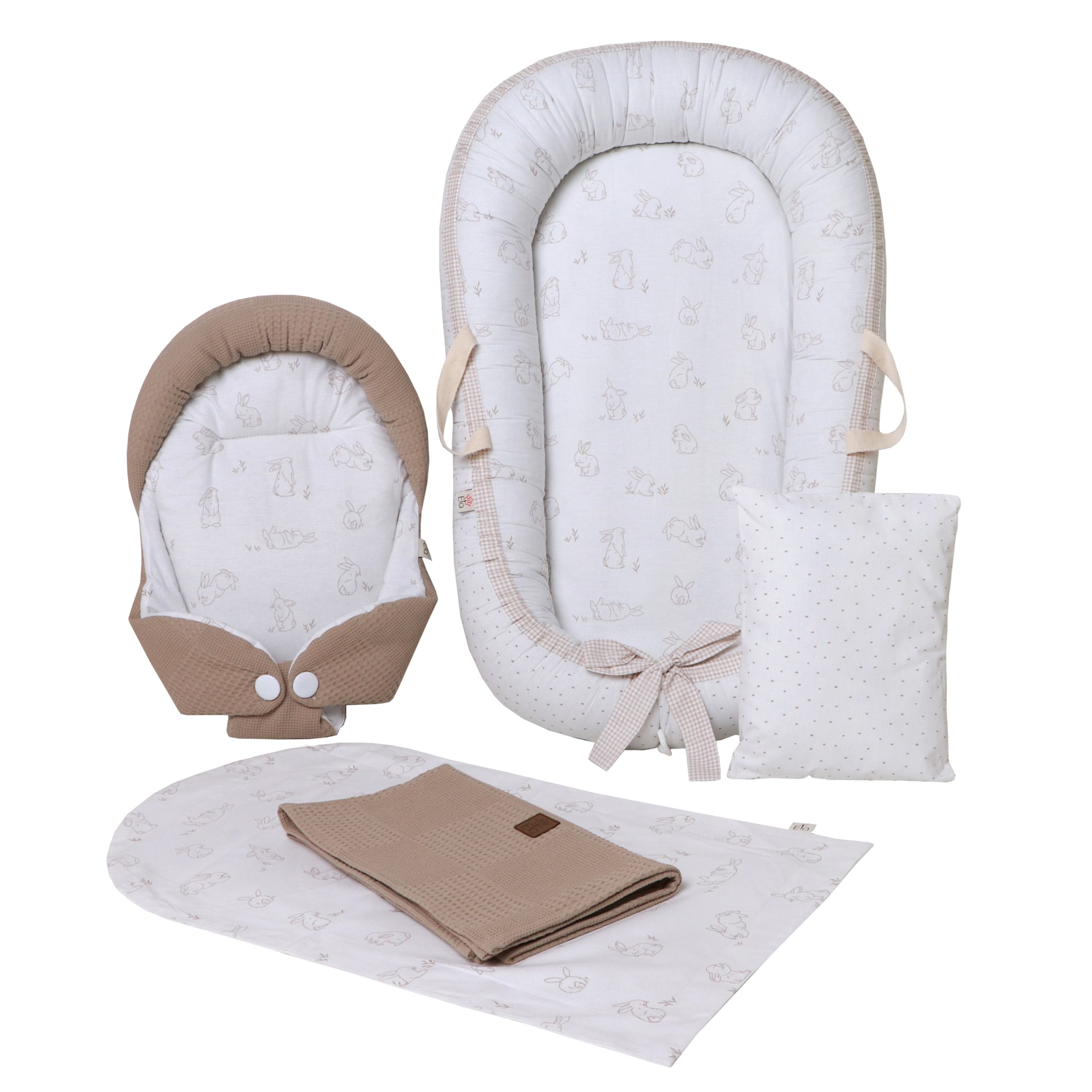 ست 5 تیکه تشک لبه دار و آغوشگیر پیکه خرگوش خطی نسکافه ای
