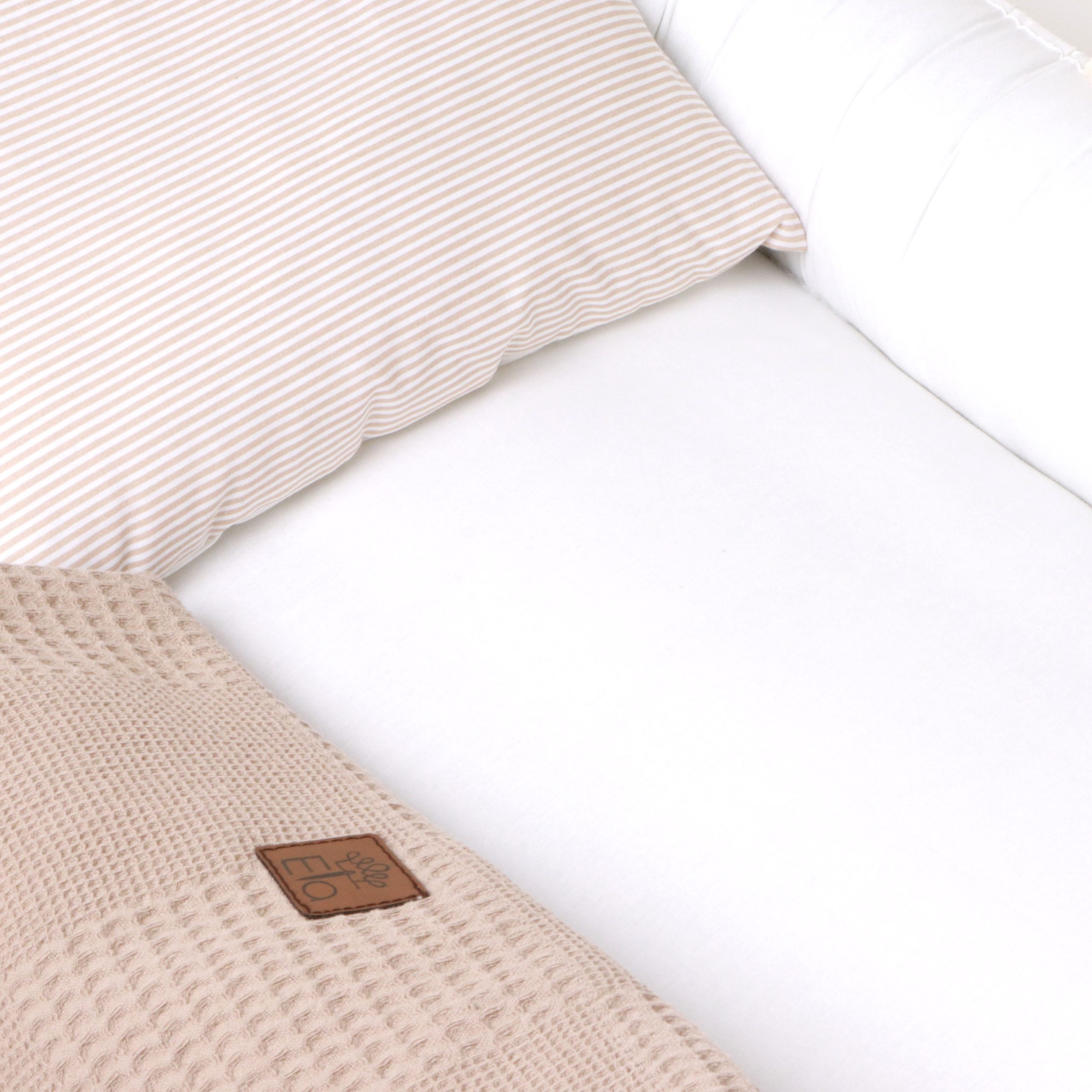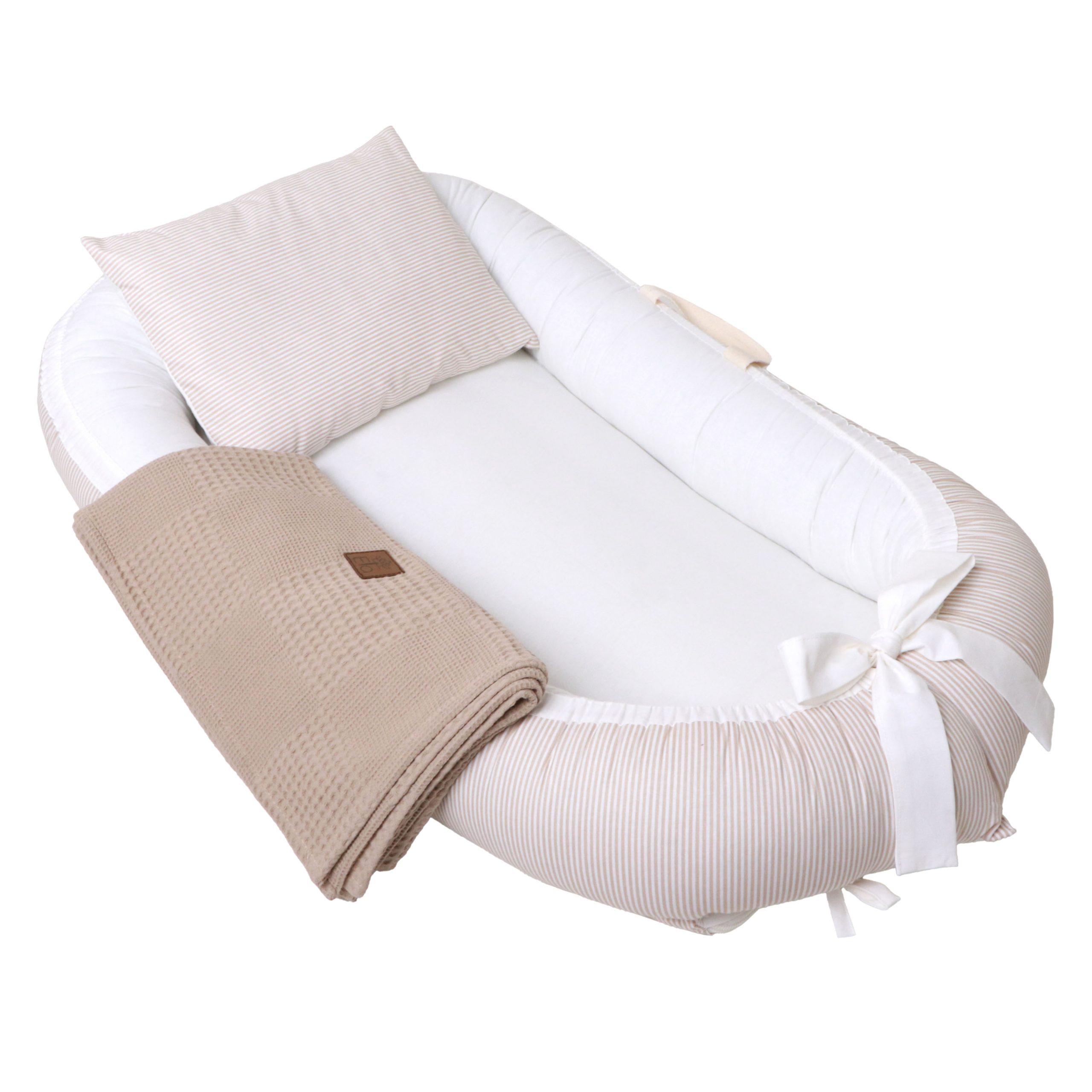 اولینروزها، مهمترین روزها هستند. روزهای ابتدایی به دنیا آمدن نوزاد، شروع مسئولیتهای پدر و مادر و آشنایی با دنیای کودکانۀ اوست. ست پنج تیکۀ تشک لبهدار، اولویت اول و اصلی این شروع است. خوابِ آرام، ایمنی جسمی و سلامت پوستی، سه موضوع مهم و حیاتی است که اِلا در طراحی ست پنج تیکۀ شک لبهدار و آغوشگیر بهکار گرفته است. خوابِ آرام، به این دلیل است که گاردهای تشک، حالت رحم مادر را تداعی میکند و به نوزاد این احساس را میدهد که دنیای بیرون از شکم مادر هم همانقدر امن و راحت است. ایمنی جسمی، به این دلیل است که گاردهای اطراف تشک، مانع افتادن و غلت خوردن نوزاد میشود. سلامتی پوستی، به این دلیل است که جنس پارچهها نخپنبه ۱۰۰٪ است و هیچ مادۀ شیمیایی یا پلیاستر در آن بهکار نرفته است. مشخصات فنی و ابعاد: تشک لبهدار(ابعاد داخلی:40*71، ابعاد بیرونی:53*87) آغوشگیر(ابعاد داخلی:31*41، ابعاد بیرونی: 36*56) بالشت: 26*35 روانداز پیکه:74*84 محافظ تشک:40*71 چرا ست پنجتیکه اِلا؟ قابل استفاده از بدو تولد تا یکسالگی پارچۀ لطیف و ارگانیک ترک طراحی ایمن برای خواب نوزاد دوخت تمیز و بادوام دستورالعمل شستوشو • شستوشو با آب ولرم • شویندۀ مخصوص نوزاد • بدون استفاده از سفیدکننده • خشککردن با دمای ملایم یا هوای آزاد سوالات پرتکرار ▪️ رنگ اصلی کالا با عکس تطابق دارد؟ ممکن است بهدلیل ادیت یا نور عکاسی، یک یا دو درجه اختلاف رنگ داشته باشد. ▪️ از بدو تولد قابل استفاده است؟ بله، تمام آیتمها مناسب نوزاد تازهمتولد شده طراحی شدهاند. ▪️ برای پوست حساس مناسب است؟ بله، پارچهها لطیف و ضد حساسیت هستن. ▪️ بعد از شستوشو تغییر شکل میدهد؟ خیر، با رعایت دستور شستوشو کیفیت و فرم حفظ میشه. ▪️ مناسب هدیه است؟ کاملاً. هم کاربردی است، هم شیک و ماندگار. ▪️تشک برای رفلاکس مناسب است؟ بله. با کمی شیب دادن به تشک، به یک تشک آنتیرفلاکس تبدیل میشود. موضوعات مرتبط با تشک لبهدار و آغوشگیر ۱-چرا باید از آغوشگیر استفاده کرد؟ ۲-تشک لبهدار جنبۀ مراقبتی دارد یا درمانی؟ ۳-چرا توصیه میشود برای نوزادان از جنس نخ خالص استفاده شود؟ ۴- چرا تشک لبهدار به خواب آرام نوزاد کمک میکند؟