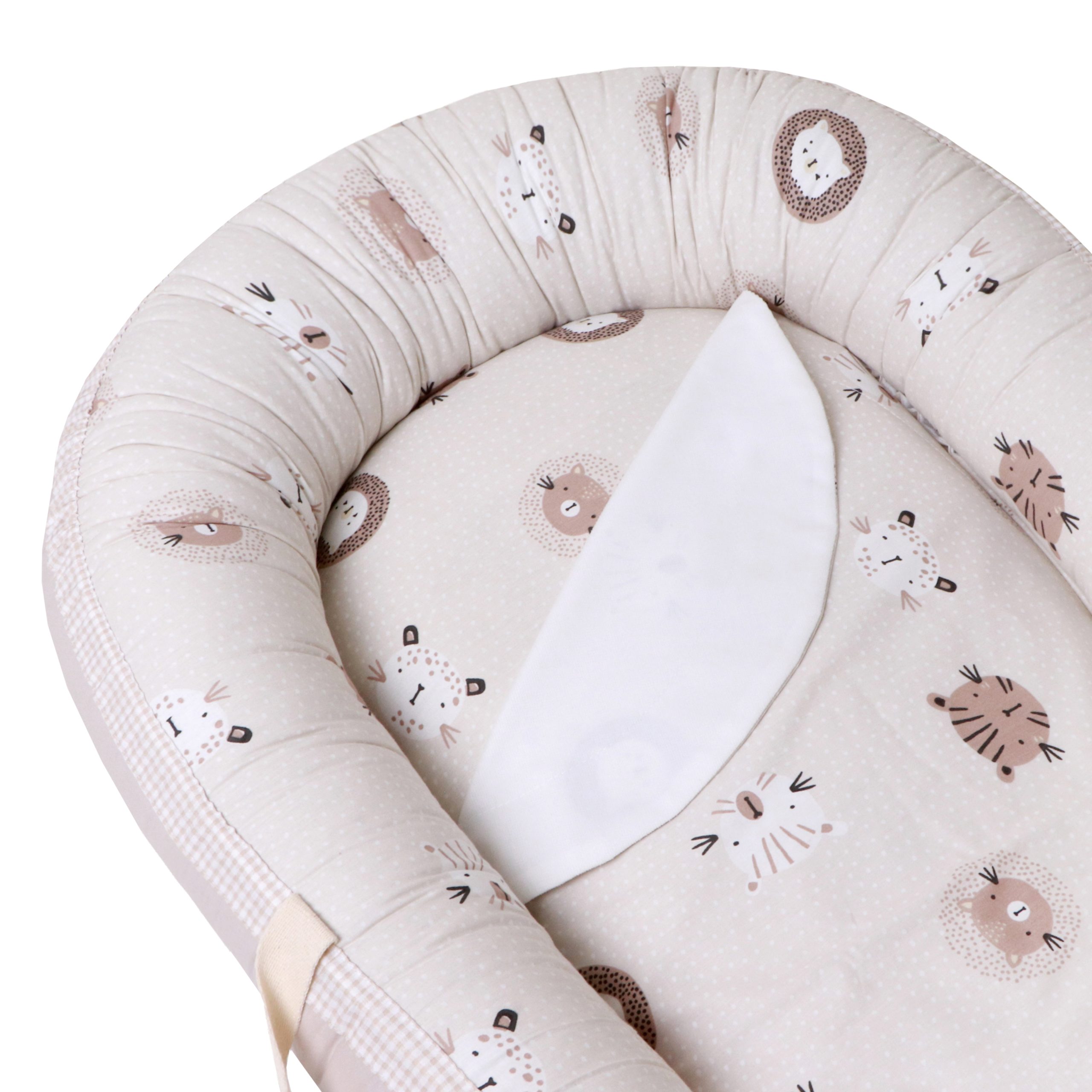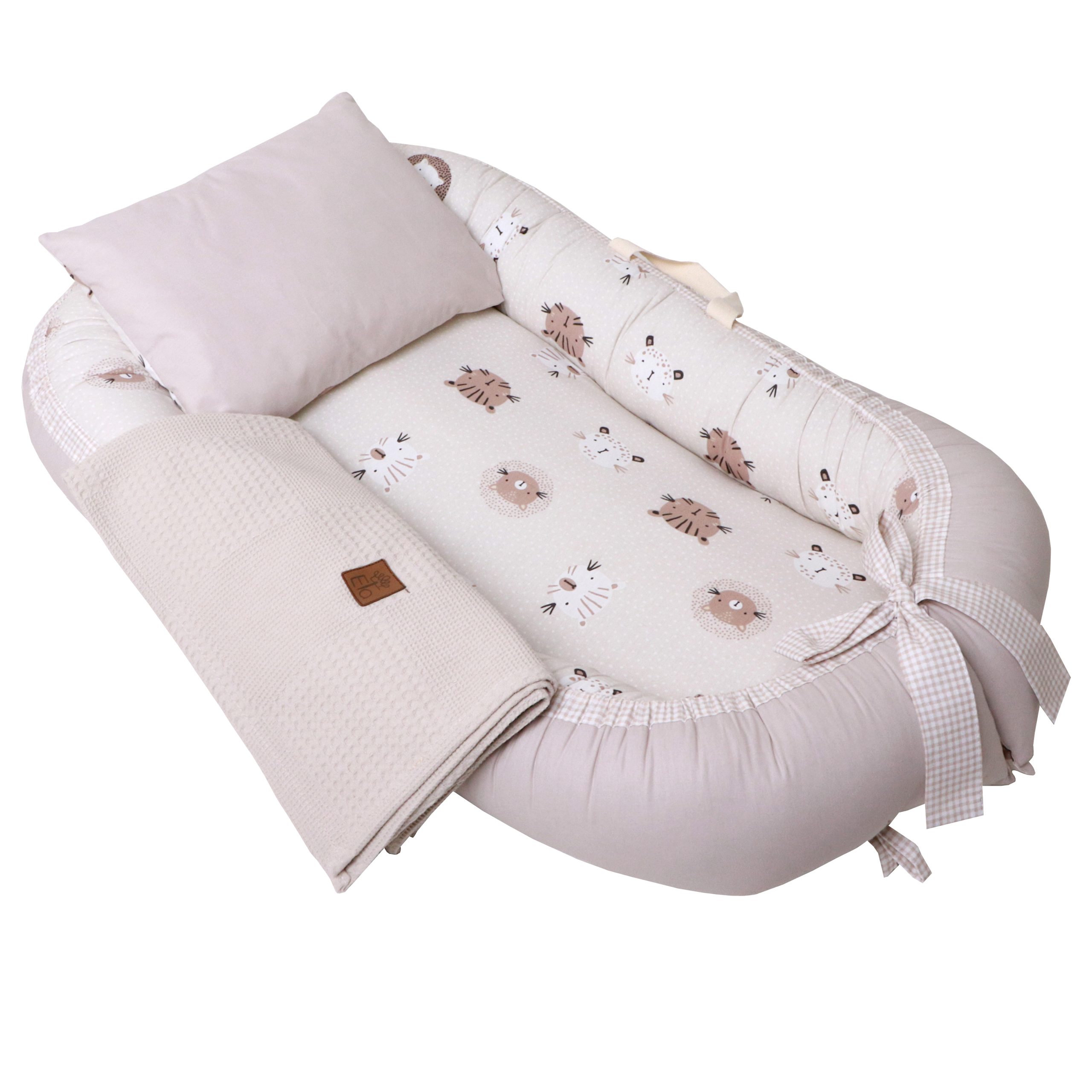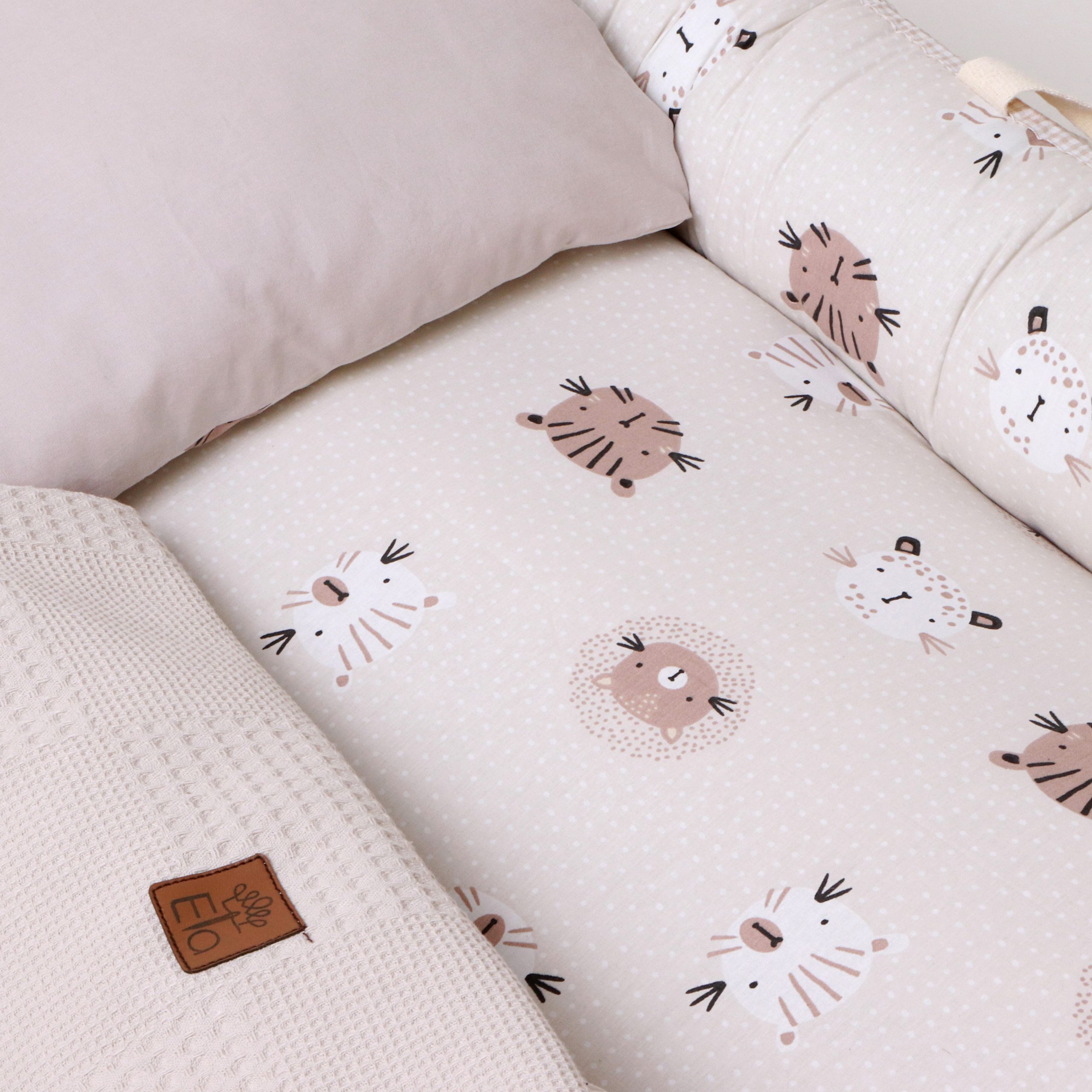 ست 5 تیکه تشک لبه دار و آغوشگیر پیکه گربه نسکافه ای