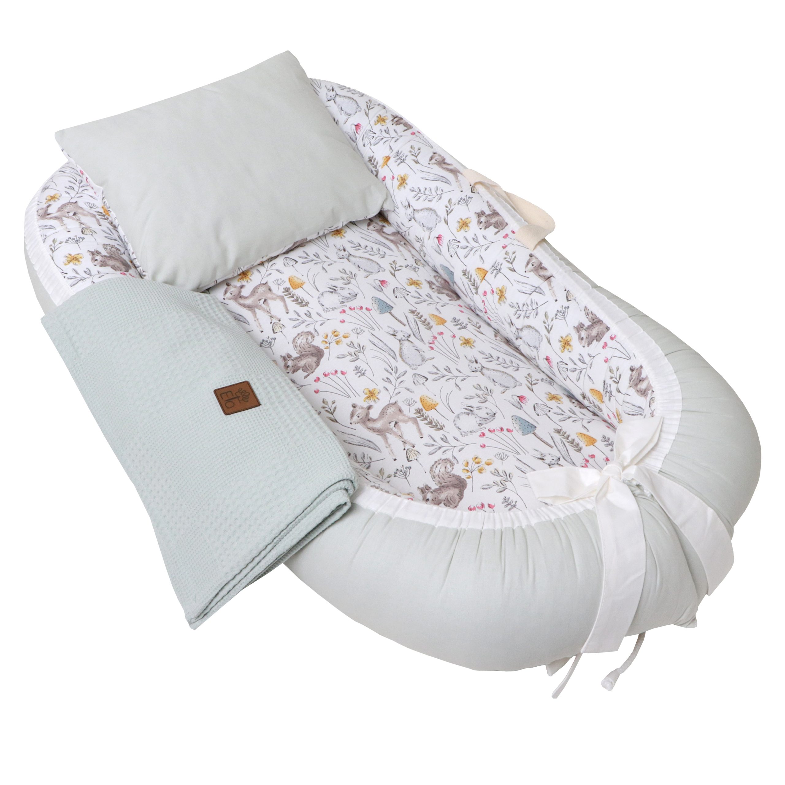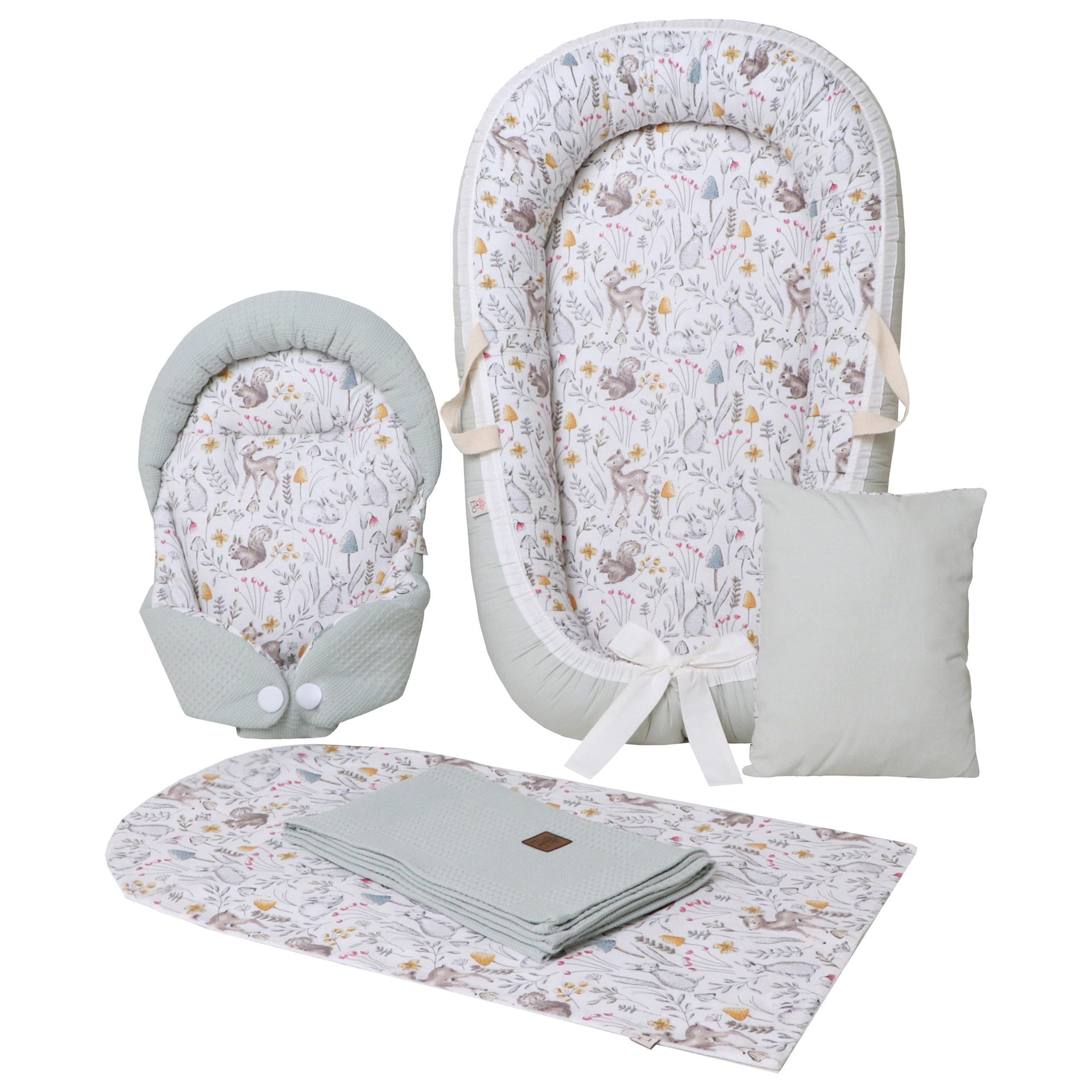 ست 5 تیکه تشک لبه دار و آغوشگیر پیکه چمنزار طوسی-سبزآبی روشن