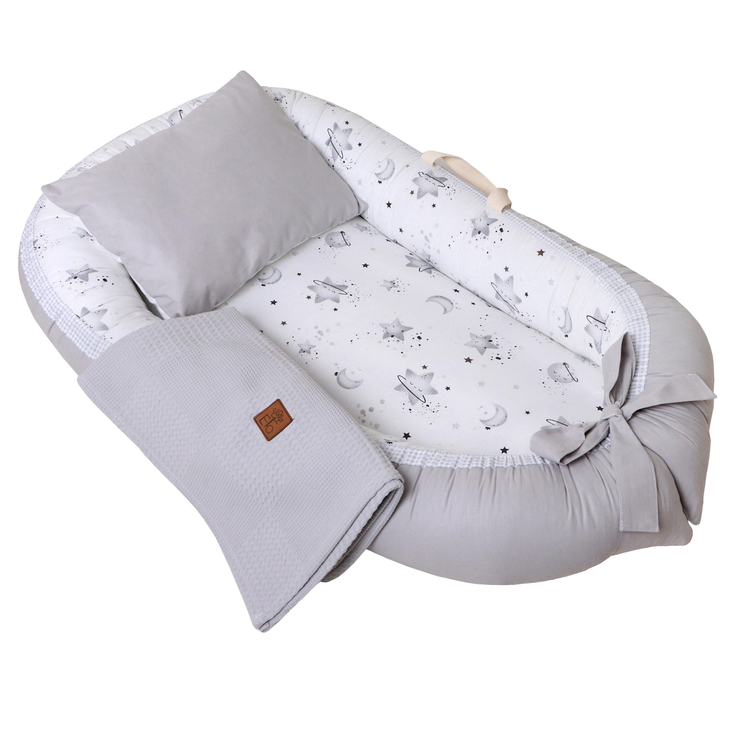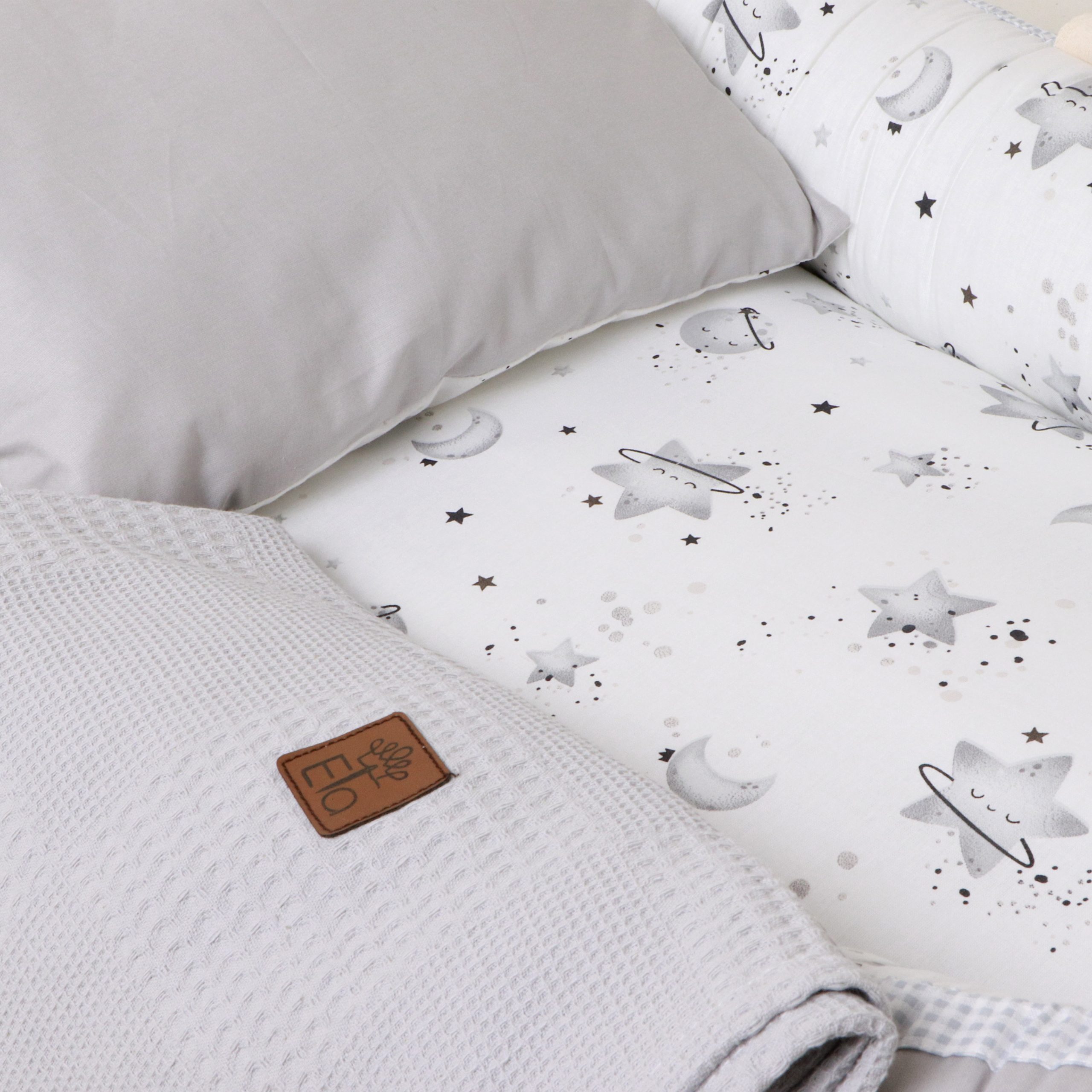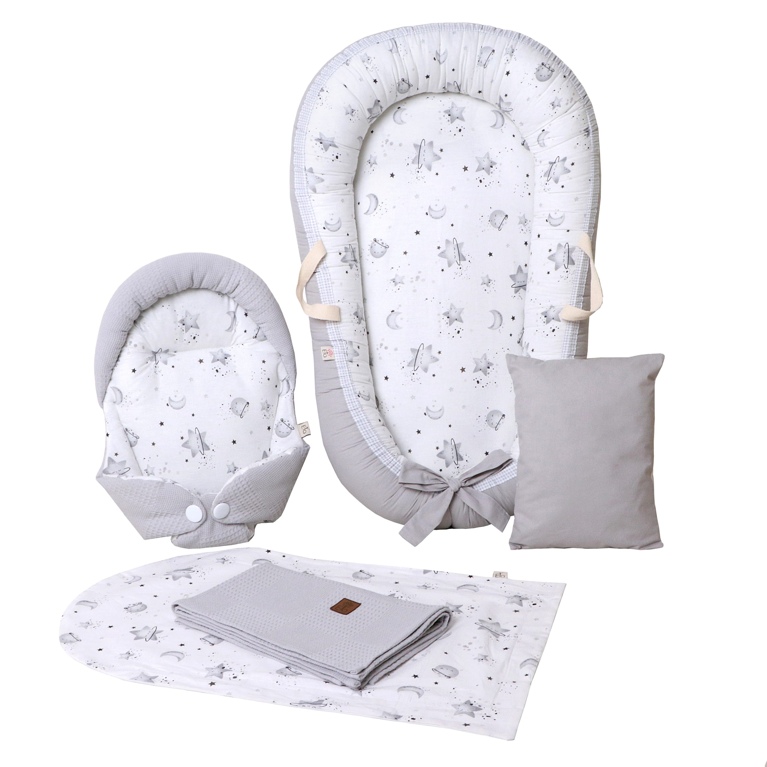 ست 5 تیکه تشک لبه دار و آغوشگیر پیکه کهکشان طوسی