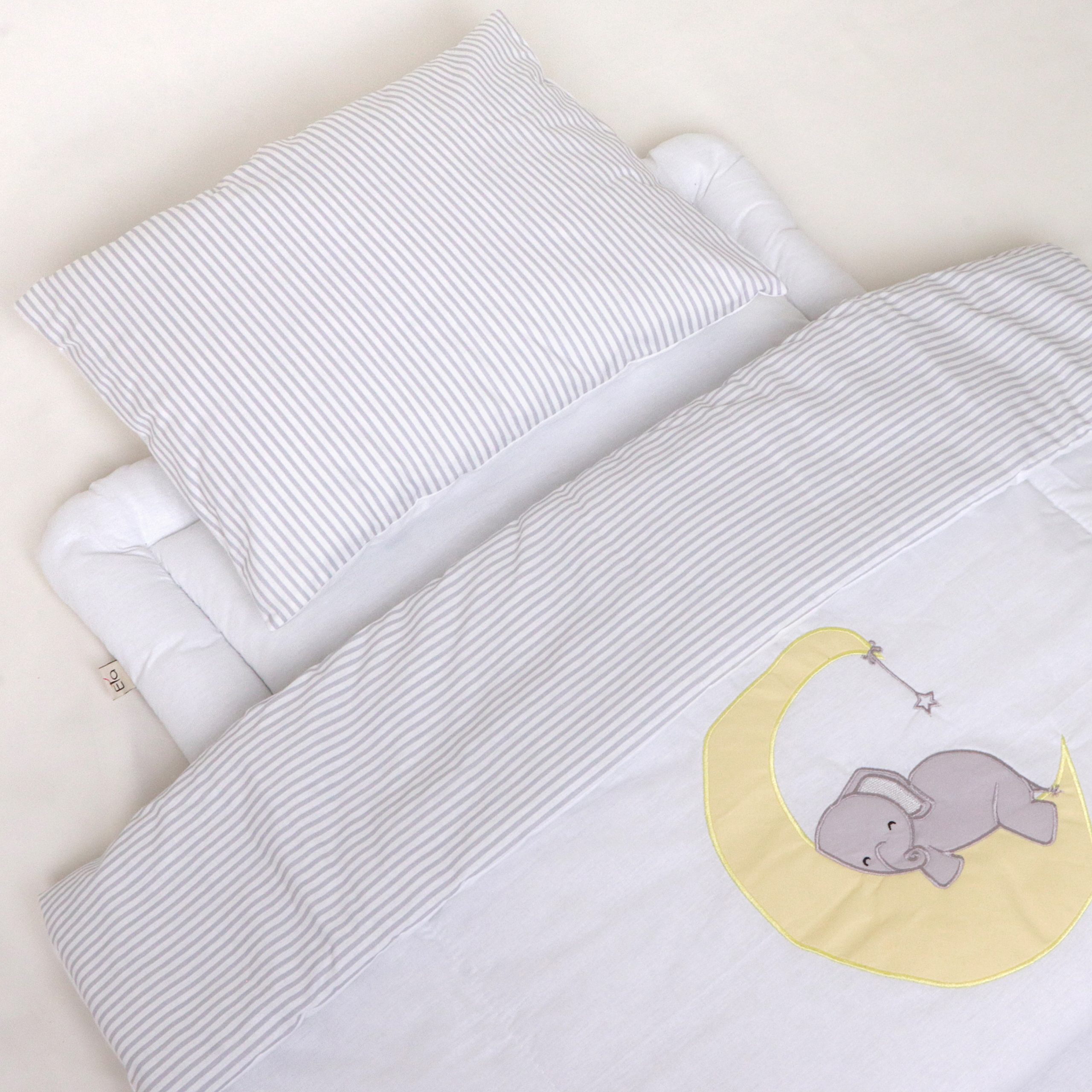 دمدستی سایز ۲ مناسب تخت کنار مادر، گهواره و تخت پارک است و لحاف بزرگتر و گرمتری دارد.