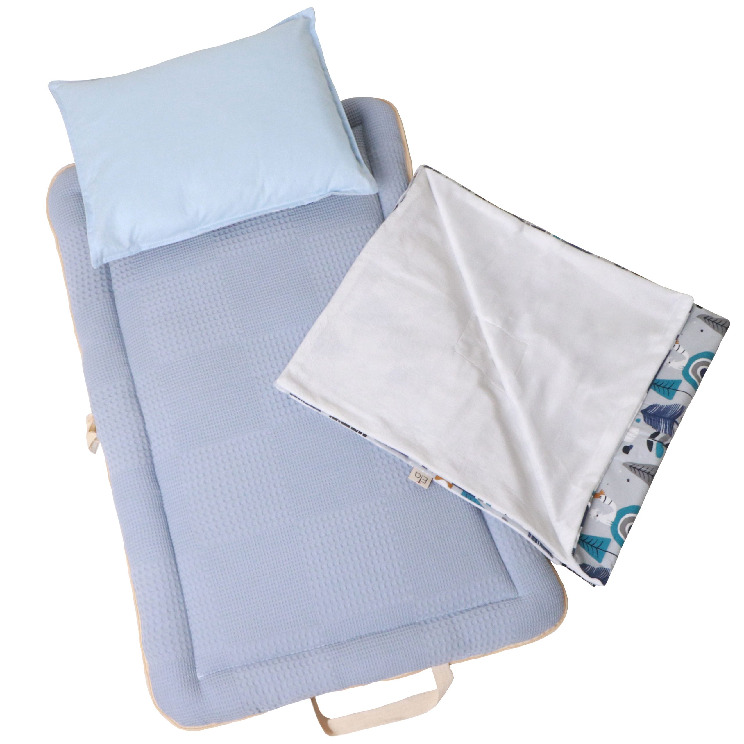 خواب نوزاد، به‌ویژه خارج از خانه، یکی از حساس‌ترین دغدغه‌های والدین است. تغییر فضا، نور، صدا و سطح خواب می‌تواند آرامش نوزاد را مختل کند. ست خواب مسافرتی اِلا با طراحی استاندارد و پارچۀ کاملاً نخ‌پنبه، سه اصل مهم را هم‌زمان فراهم می‌کند: آرامش نوزاد، راحتی بیرون رفتن با نوزاد،  سلامت پوست. آرامش نوزاد به این دلیل است که ست خواب مسافرتی اِلا، فضایی آشنا و امن شبیه به محیط خواب همیشگی نوزاد ایجاد می‌کند و از شوک محیطی در سفر یا مهمانی جلوگیری می‌کند. تشک با ضخامت استاندارد طراحی شده و بدن نوزاد را در حالت صاف و طبیعی نگه می‌دارد . راحتی بیرون رفتن با نوزاد به این دلیل است که این ست جمع‌و‌جور است و چون به حالت ساک دستی درمی‌آد، انتخاب اول مادران است. به‌ویژه مادرانی که شاغلند یا زیاد به مهمانی و سفر می‌روند. سلامت پوست به این دلیل است که تمامی پارچه‌ها ۱۰۰٪ نخ‌پنبه خالص هستند و هیچ‌گونه الیاف مصنوعی یا مواد شیمیایی در آن‌ها به‌کار نرفته است.