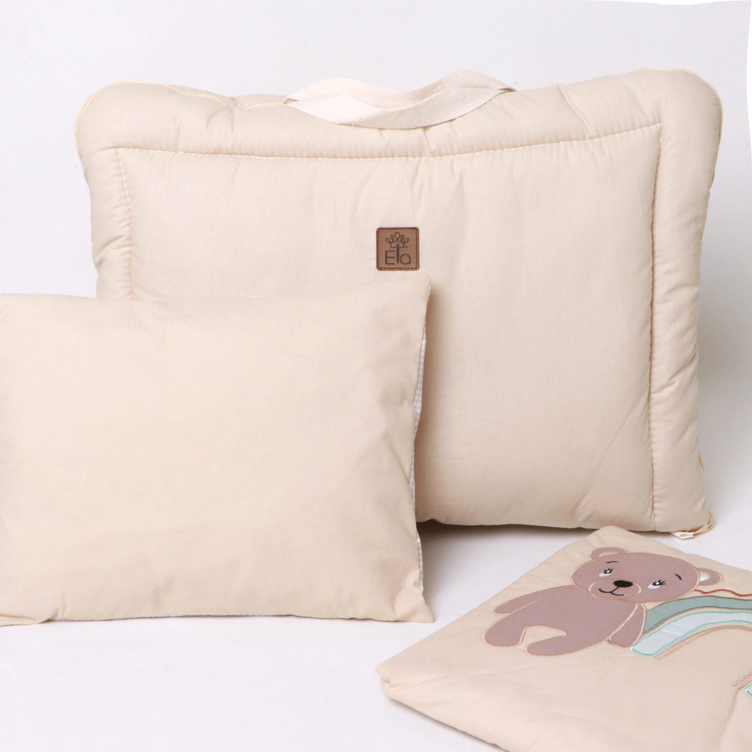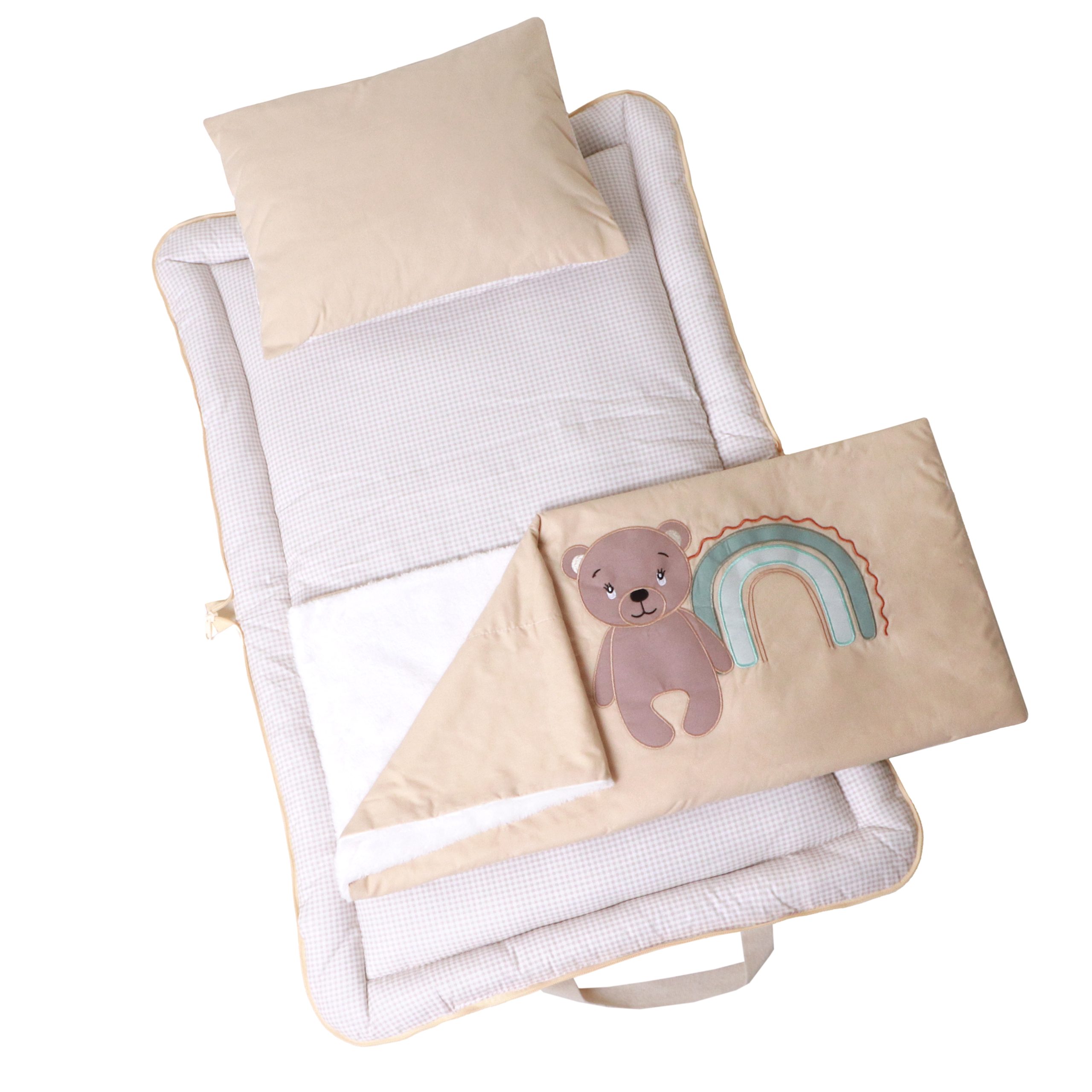 ست خواب مسافرتی گلدوزی تدی (چهارخانه بژ)