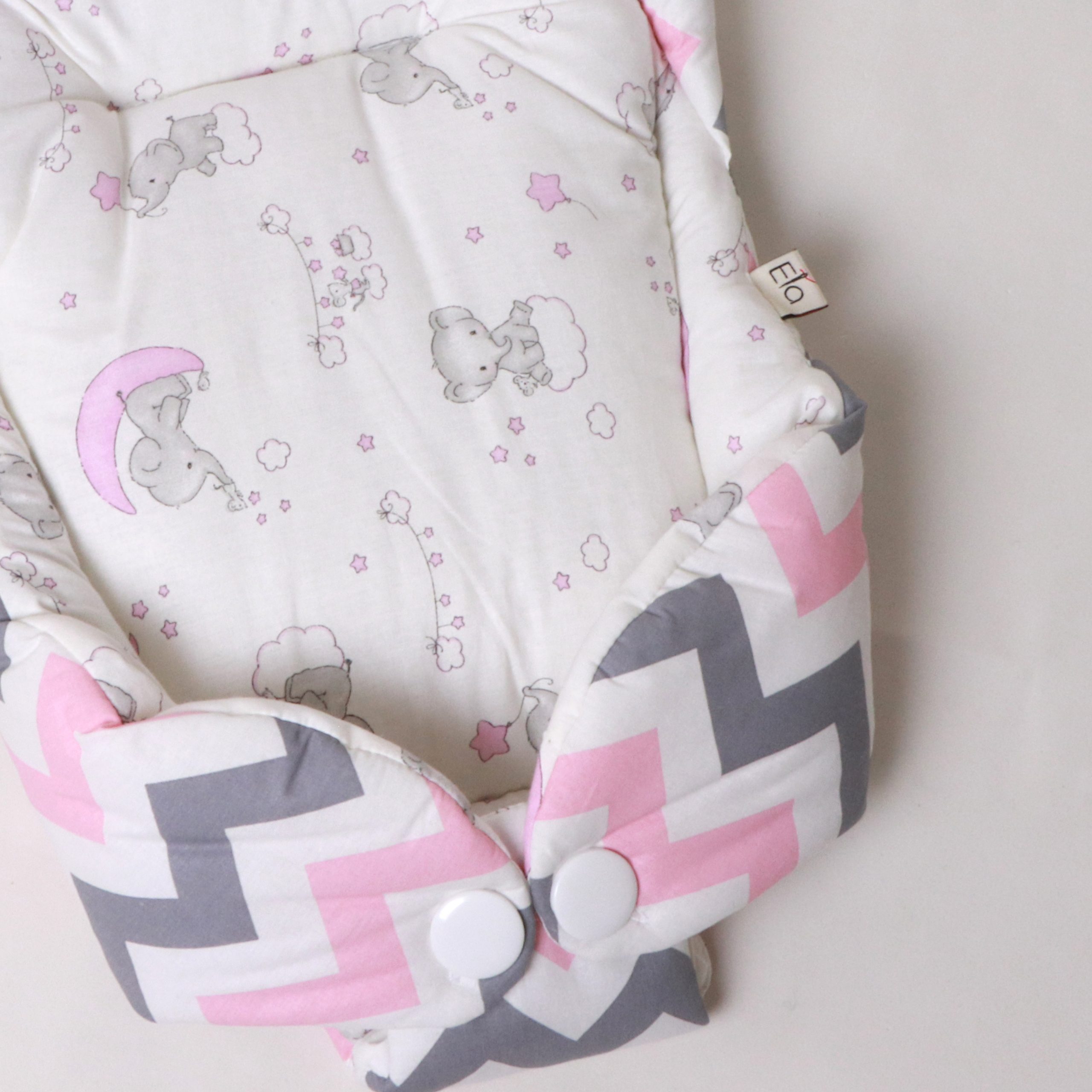 هنگام آغوش گرفتن نوزاد، احتیاط شرط عقل است. بغل کردن‌ نوزاد، در عین‌حال که بسیار شیرین است، سختی‌ها و دستورالعمل‌های ویژه‌ای دارد. آغوش‌گیر اِلا با طراحی ارگونومیک و پارچۀ کاملاً نخ‌پنبه، سه اصل مهم را هم‌زمان فراهم می‌کند: سلامت جسم، سلامت پوست، راحتی نوزاد. راحتی نوزاد به این دلیل است که فرم آغوش‌گیر، بدن نوزاد را در وضعیت طبیعی و جمع‌شده نگه می‌دارد و حس رحم مادر را تداعی می‌کند. به‌هیچ‌وجه پاهای نوزاد را از هم باز نکنید. این حالت پاهای جمع‌شده کاملاً طبیعی است و برای این است که نوزاد هنوز خودش را در شکم مادرش تصور می‌کند. سلامت جسم به این دلیل است که سر و‌ گردن نوزاد در یک‌ حالت نرمال و طبیعی قرار می‌گیرد و فشاری رو ستون مهره‌اش نمی‌آید. سلامت پوست به این دلیل است که پارچه‌ها ۱۰۰٪ نخ‌پنبۀ خالص هستند و هیچ‌گونه الیاف مصنوعی یا مواد شیمیایی در آن‌ها به‌کار نرفته است.