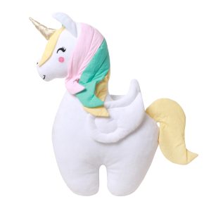 عروسک خواب کامفورت خرس سفید با لباس شیروفیل آبی
